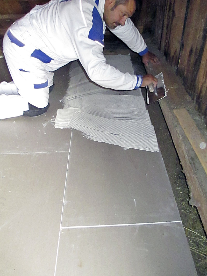 Pred inštaláciou finálnej nášľapnej vrstvy (dlažba, drevo, vinyl) treba upraviť nasiakavosť povrchu hotovej suchej dlážky napríklad hĺbkovou. Tenké vykurovacie rohože sa vkladajú do vrstvy flexibilného lepidla pod finálnu dlažbu. Pri rekonštrukcii kúpeľní treba použiť na penetráciu ešte tekutú hydroizoláciu v kombinácii s tesniacimi páskami (do rohov a kútov).