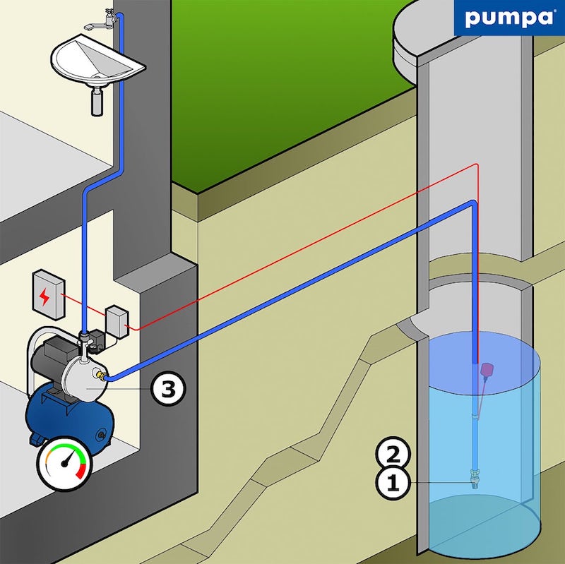 Nedostatočný tlak vody pri zásobovaní z vlastného zdroja (studne alebo vrtu) je spravidla daný nedostatočným výkonom čerpadla vo vrte alebo v studni. Jediným riešením je výmena čerpadla za nový a silnejší variant, ale len v prípade, že to umožňuje výdatnosť zdroja vody. Podobne ako pri vodovodnom systéme platí, že pokiaľ je výdatnosť zdroja vody nedostatočná, je potrebné do systému pridať prerušovaciu nádrž a za ňu umiestniť domácu vodáreň s tlakovým spínačom alebo frekvenčným meničom. Platí to ako pri zaistení rozvodu vody po prístavbe či rekonštrukcii, tak pri znižovaní hladiny podzemných vôd v studniach a vrtoch.