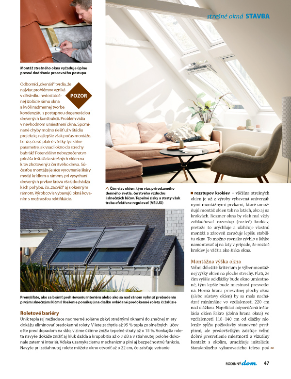 46 – Svetelný komfort na poschodí: Technické parametre strešných okien rozhodujú o kvalite bývania a výrazne ovplyvnujú ekonomické ukazovatele