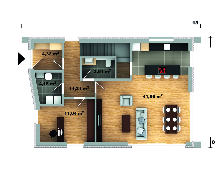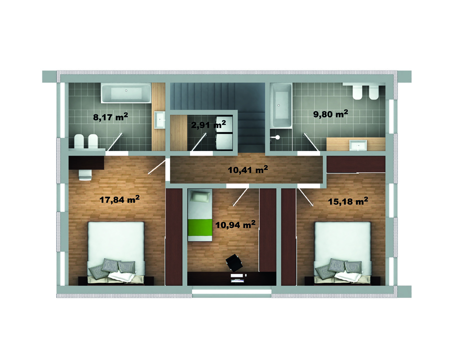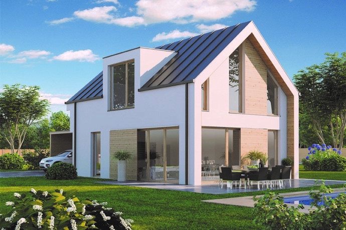 Blanka 63 B je moderne strihaný dvojpodlažný dom so šikmou škridlovou alebo plechovou strechou bez presahov. So svojou šírkou 8 m ide o dom, ktorý sa priamo hodí na úzke parcely, ale nielen na nich. Sviežim moderným vzhľadom zapadne prakticky do ktorejkoľvek modernejšej mestskej alebo prímestskej štvrte. Vnútri je dostatok priestoru, ktorý je rozdelený na spodné obytné poschodie s pracovňou či izbou pre hostí a horné súkromné s dvoma detskými izbami a spálňou rodičov s vlastnou kúpeľňou.