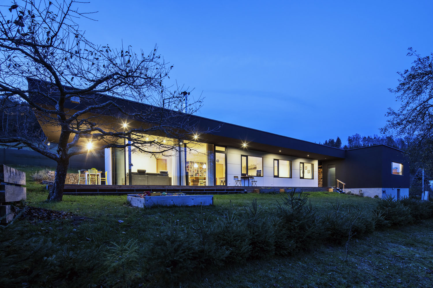 „Výrazná horizontála domu je inšpirovaná okolitou krajinou, dom je síce vsadený do svahu, ale výhľad na rieku a široké polia, ktorými preteká, navodzuje pokoj a harmóniu. Našou snahou bolo, aby dom pôsobil nevtieravo a mierne pre okolie i svojich obyvateľov. Pre nás je spätná väzba ohromne dôležitá, vždy sa klientov po čase, keď sa s domom už zžili, pýtame, či sa všetko podarilo tak, ako bolo v pláne, alebo či by niečo urobili inak. Život niekedy prinesie situácie, na ktoré ani pri veľkej starostlivosti architekt nedohliadne… V tomto prípade dom funguje tak, ako sme chceli.“