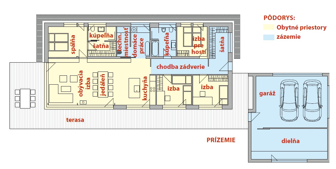 Majitelia domu mali pri plánovaní svojho bývania jasnú predstavu nielen o jeho funkčnosti, ale zvažovali starostlivo aj jeho výtvarnú stránku. Štvorčlennej rodine mal poskytnúť dostatok súkromia, čo najviac svetla, a dôležité boli okrem iného aj nízke prevádzkové náklady. Za zásadné považovali bezbariérové usporiadanie a premyslené prepojenie hlavnej obytnej miestnosti s vonkajšou krytou terasou a záhradou.
