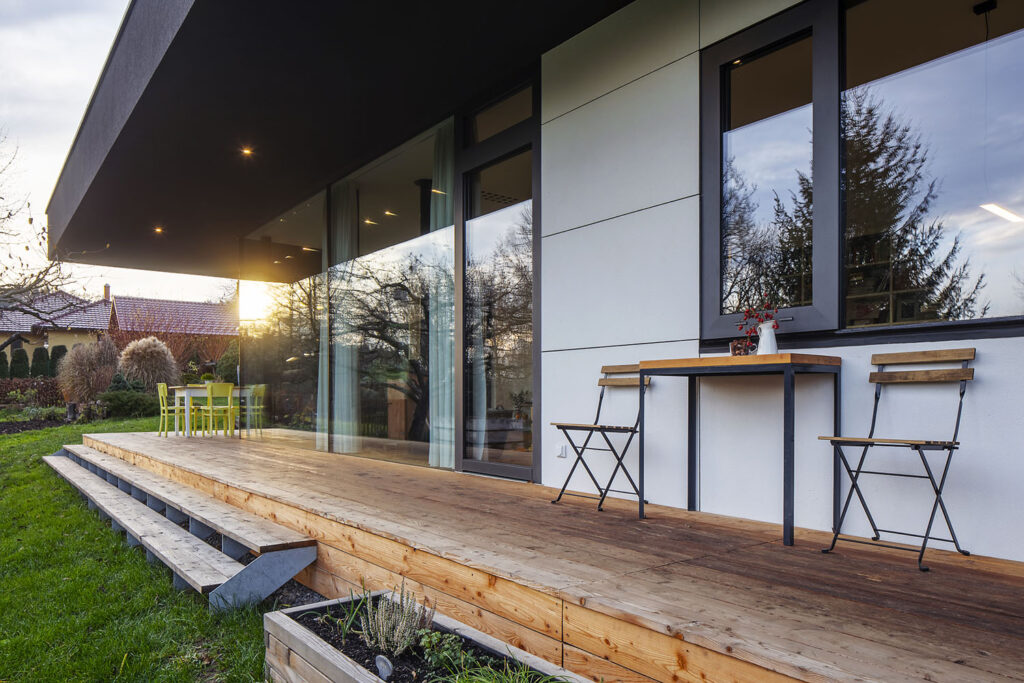 Výplne otvorov: okná drevohliníkové, izolačné trojsklá + bezrámové zasklenie izolačnými trojsklami