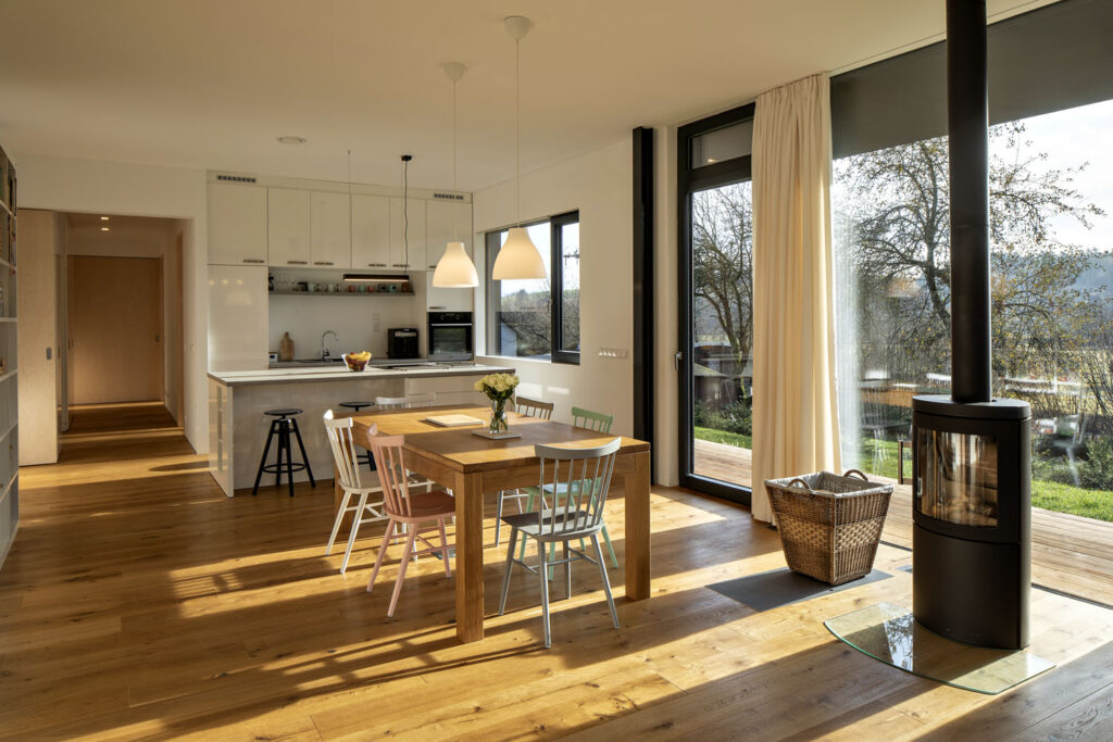 „Z domu sme stále nadšení a po dva a pol roku bývania by sme na ňom nič nemenili. Sme radi, že sme si koncept domu s architektmi dôkladne premysleli a naplánovali presne podľa našich predstáv. Najviac si užívame veľkú obývaciu izbu spojenú s kuchyňou, kde trávime všetci väčšinu času. Každé ráno sa tešíme, až roztiahneme závesy a pohltí nás výhľad do prírody. Ten pohľad nás azda nikdy neomrzí! Veľmi oceňujeme aj zastrešenie terasy, v lete chráni pred slnkom a využívame ju aj v daždi.“