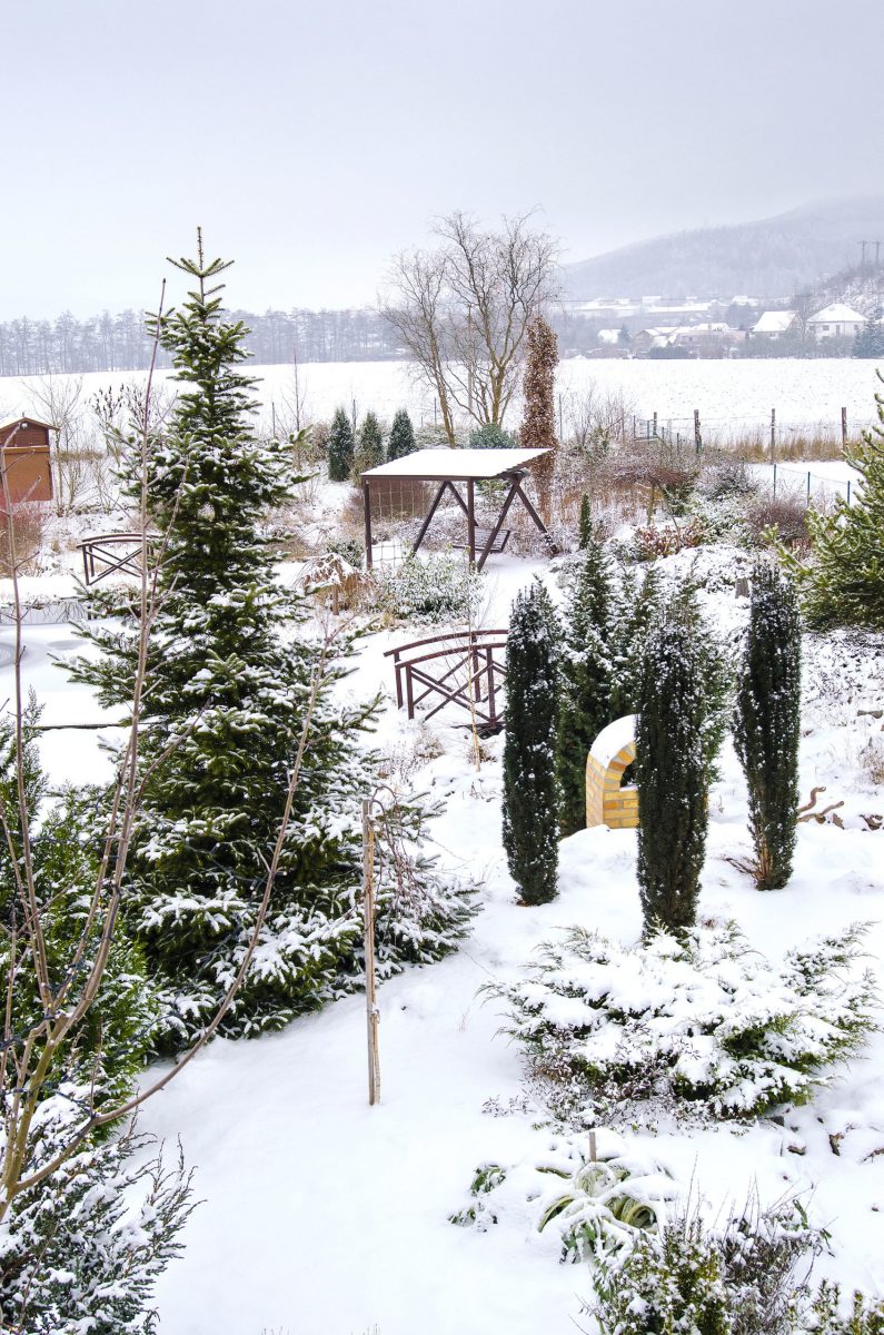 Majitelia sú radi, že v zime môžu na záhrade objavovať veci, ktoré by si v lete zrejme vôbec nevšimli. „Čerpáme energiu z pokoja, ktorý tu pri teplotách pod nulou panuje,“ smeje sa Iva Sedláčková. Naozaj je tu také ticho, že keby spadol špendlík, bolo by počuť cinknutie o zmrznutú zem.