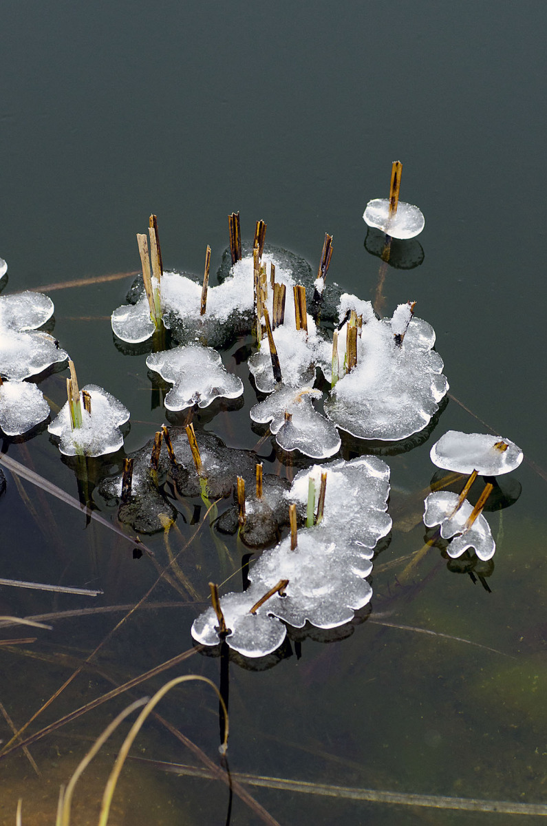 Kým v lete sú vlhké brehy zarastené vysokými pálkami, teraz sa mráz pohráva už len s ich kratučkými pahýľmi. Ondrej totiž husté trsy kosí už pred zimou, aby ich nemusel zväzovať, aby ich polámané listy vo vode nehnili. Zo skúsenosti vie, že aj keď do obnažených stebiel naprší a voda v nich zmrzne, na jar vždy spoľahlivo vyženú mladé výhonky, na ktorých s obľubou vysedávajú rybáriky. „Netušili sme, že sem voda naláka toľko života,“ podotýka Ondrej a nadšene vymenováva druhy žiab, vážok a vtákov, ktoré ich navštevujú.
