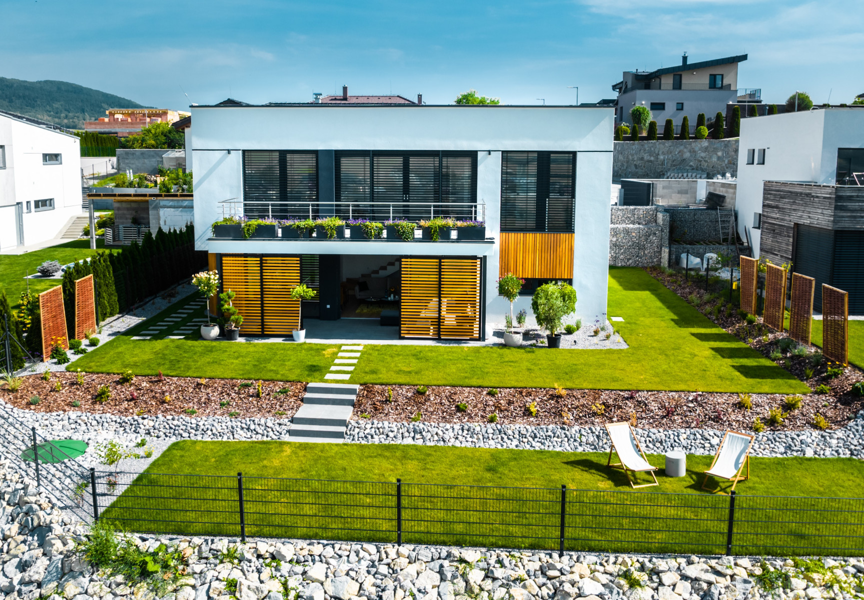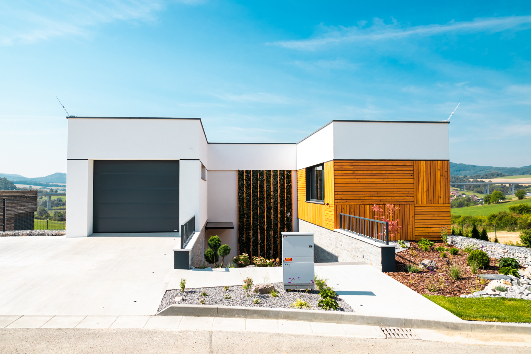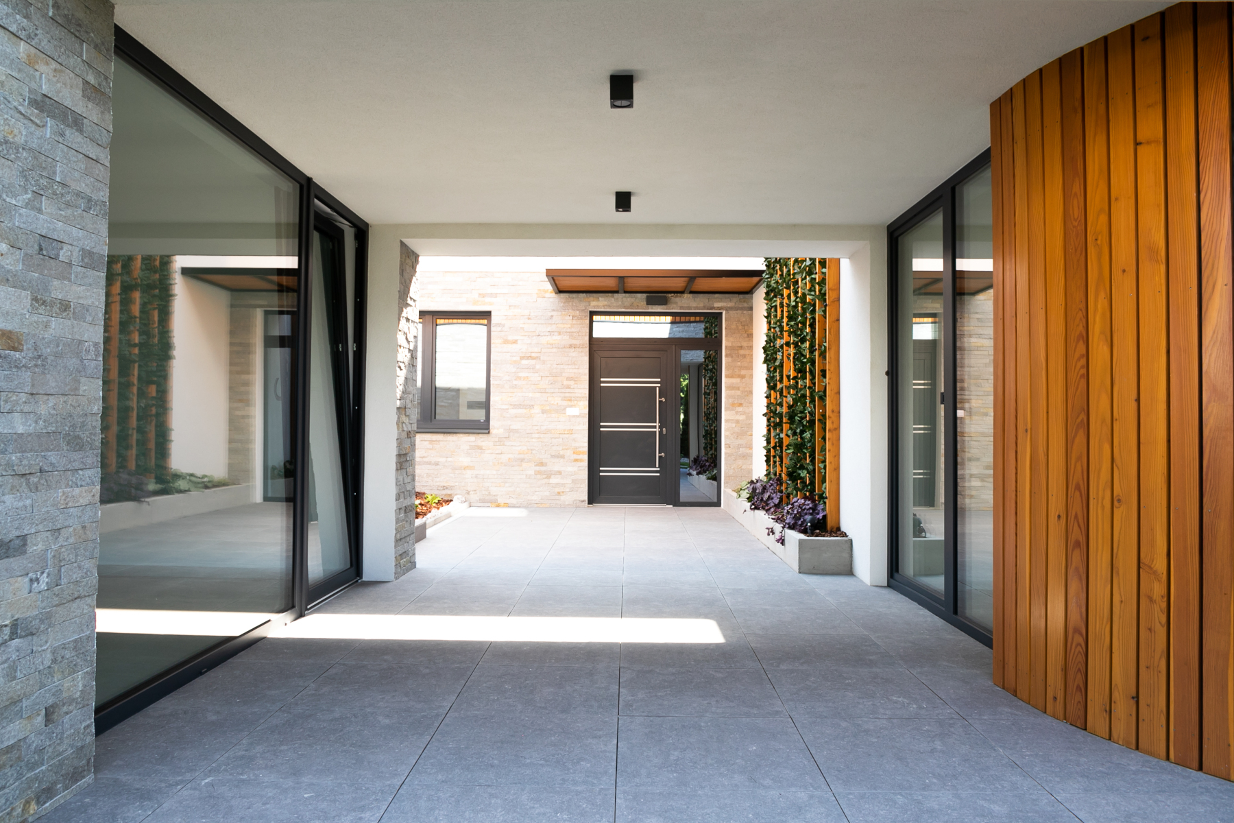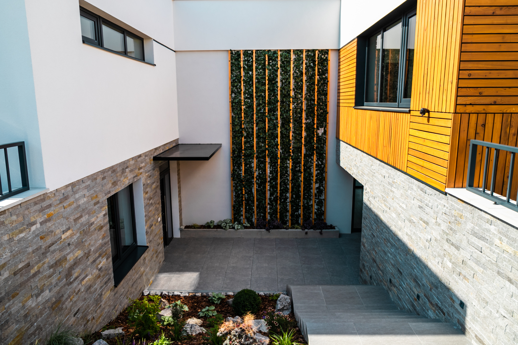 V obci Hôrky neďaleko Žiliny stojí originálna novostavba v tvare písmena U so 6 obytnými miestnosťami. Novostavba z tehál, na zateplenie ktorej sa použil polystyrén s hrúbkou 20 cm. Fasádu tvorí štruktúrovaná biela silikónová omietka skombinovaná s kamenným obkladom. Netradičným prvkom pri vchode do domu je stena pokrytá popínavými rastlinami. Súčasťou fasády sú aj zaujímavo ukladané drevené obklady. Na stavbe boli použité plastové okná INCON DESIGN s väčšou stavebnou hĺbkou v antracitovej farbe. Majú minimalistický dizajn a svojím vzhľadom pripomínajú hliníkové okná. Kuchyňa s obývačkou majú priamy kontakt s exteriérom, a to z dvoch strán. Na jednej strane je vstup na terasu do slnečnej časti záhrady, na druhej strane je chladnejšia terasa orientovaná dovnútra dispozície domu. Tá bola vytvorená v nadväznosti na samostatne oddelenú multifunkčnú miestnosť, z ktorej si rodina urobila domáce wellness.