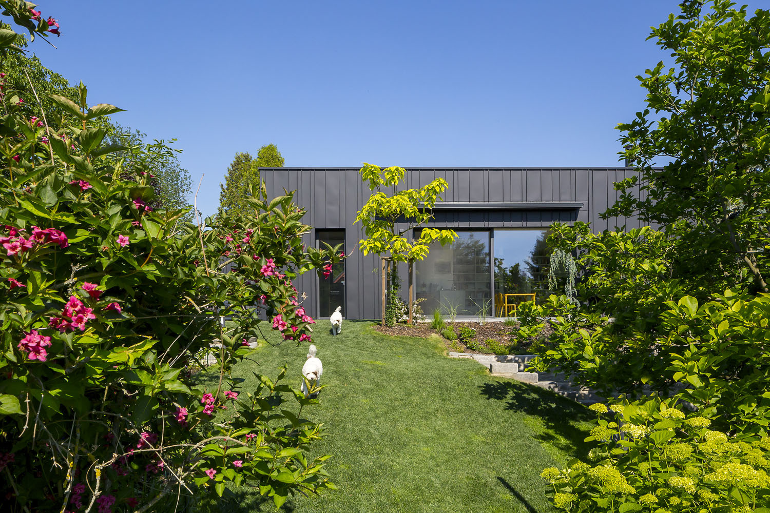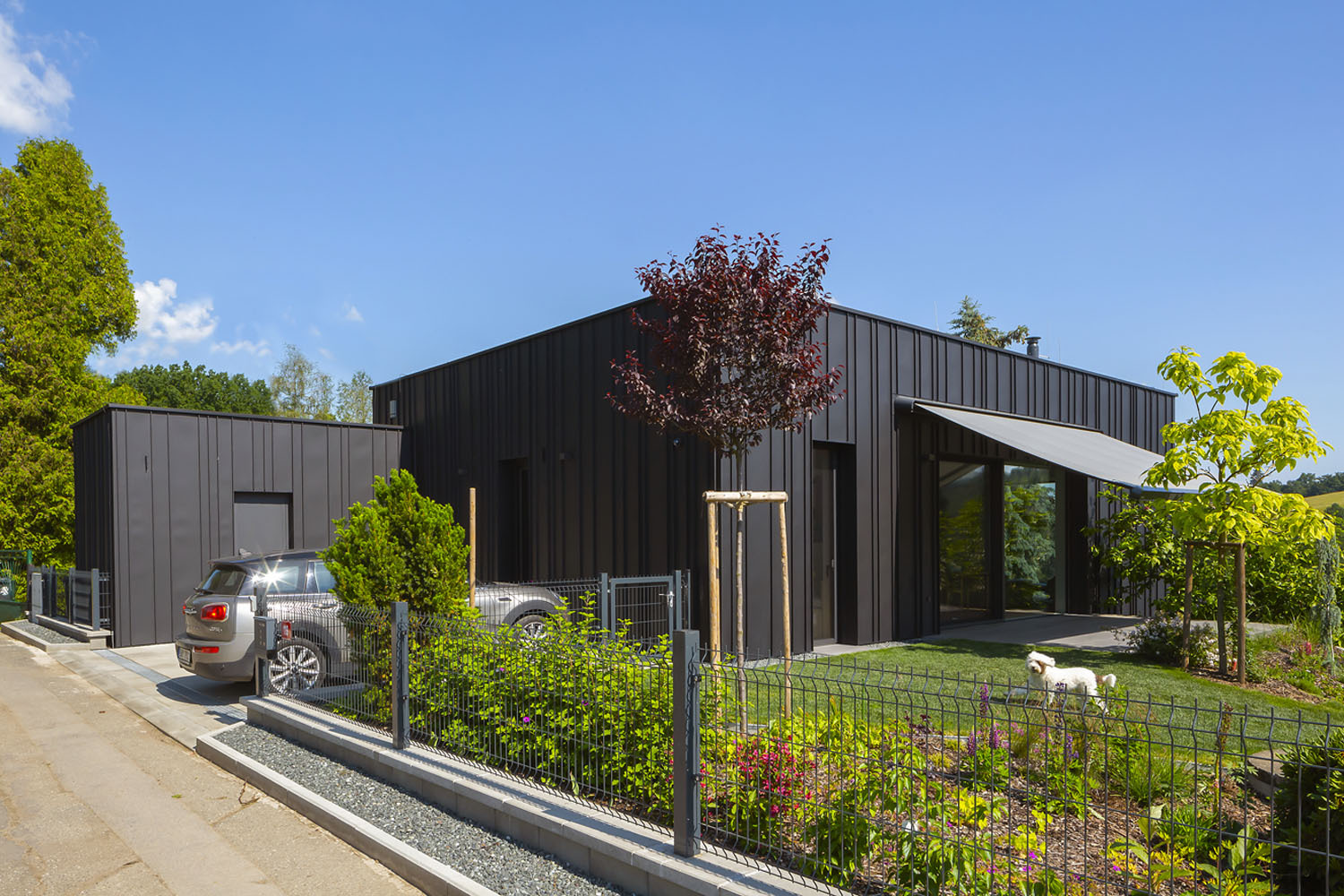 Atypická stavba kubického tvaru s čiernou plechovou fasádou nahradila pôvodný domček