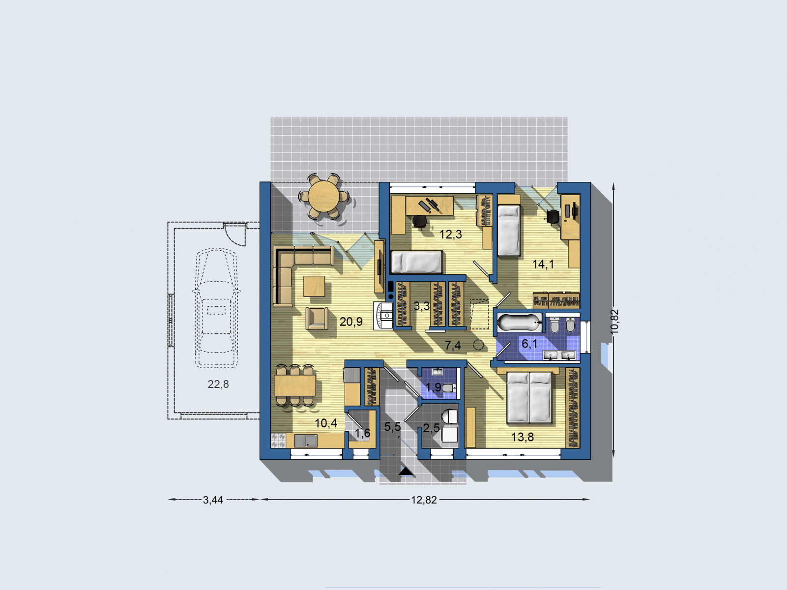 - Zastavaná plocha: 138,7 m²