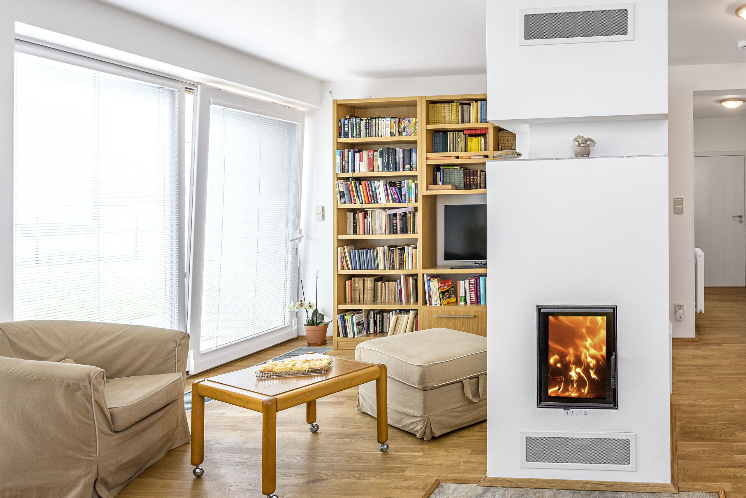 Ďalším zdrojom tepla je centrálny kozub. O rovnomerný chod vykurovacieho systému sa stará systém Regulus. Dom má výborné technicko-tepelné vlastnosti, je premyslený do najmenších detailov. Stavebníci sa budovaniu venovali naplno, čo sa nedá prehliadnuť.