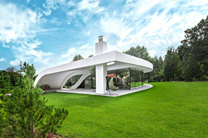 Tento dom nepochybne zaujme už na prvý pohľad. Pripomínajúc vlnu, zasadením v prírode alebo obrovským do oblúka zahnutým sklom. Experimentálny dom spoločnosti Ekonomické stavby akoby vyrastal zo zeme zelenou strechou na severnej strane pozemku, inak je zo všetkých strán presklený. Ponúka tak nadštandardné prepojenie s okolitou prírodou. Plne inteligentne riadený jednopodlažný dom, usadený vedľa lesa, využíva moderné technológie a jeho oblúkový tvar bol aj príležitosťou vyskúšať rad unikátnych technických riešení. Dom tak slúži, okrem bývania, aj na overenie najrôznejších parametrov od tepelnej pohody cez akustiku až po pocit súkromia