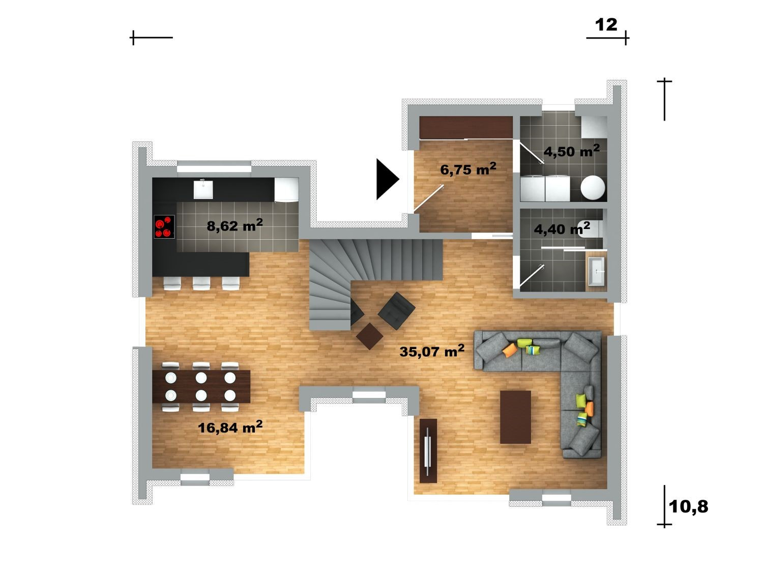 Dom určený pre ľudí, ktorí majú radi dostatok priestoru a svetla. Koncepciou domu je nové poňatie klasického bývania, ale v modernom kabáte. Milovníkov vzdušných priestorov nadchne otvorené dolné poschodie spájajúce veľkú obývaciu izbu s jedálňou a kuchynským kútom. Veľká rodina ocení veľa miesta pre spoločne trávený čas i súkromie každej izby. Dôležitý faktor je prirodzené osvetlenie izieb a kontakt so záhradou, ktorý je umocnený veľkými oknami. Tento moderne vyzerajúci dom zaujme nevšedným vzhľadom a veľmi funkčnou a čistou dispozíciou. Skrátka, dom určený na úžasné žitie.