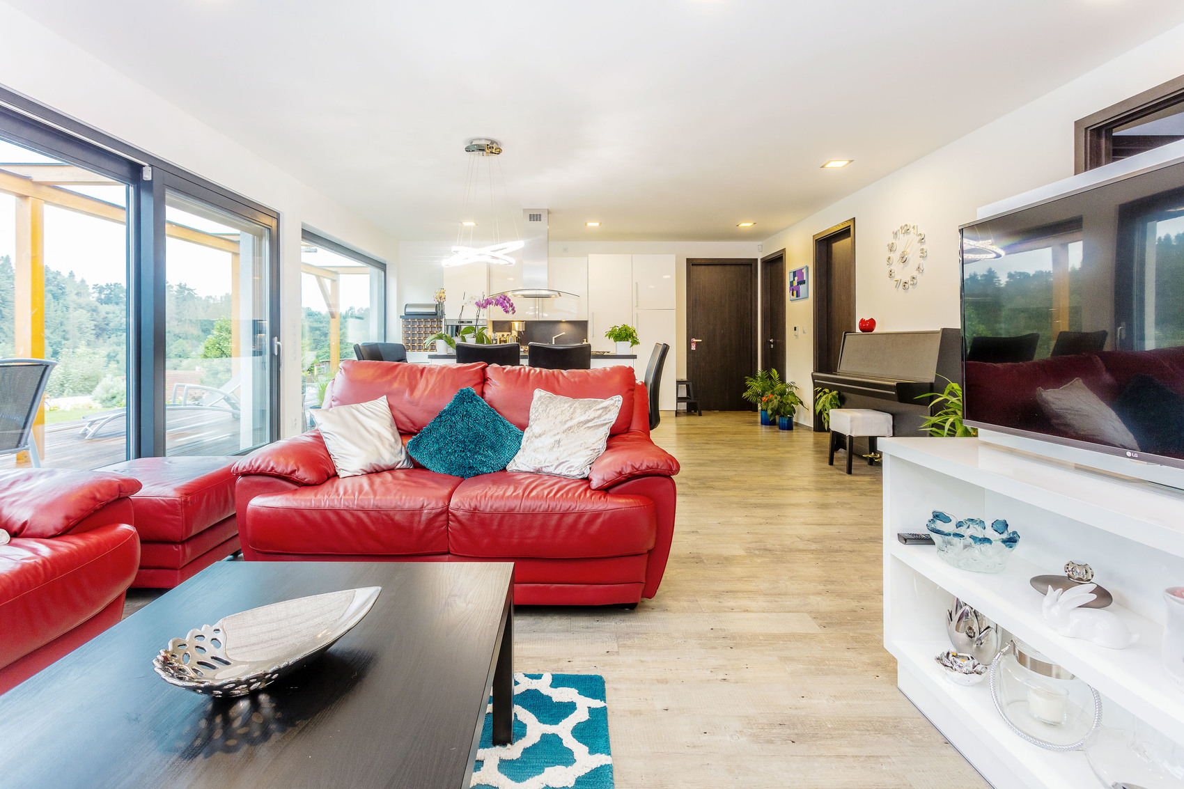 Stavebníci pozemok kúpili už pred rokmi, plná pracovná vyťaženosť však spôsobila, že projekt domu tvorili s architektom s prestávkami päť rokov. Až keď boli s výsledkom spokojní, začali pátrať po stavebnej firme. „Počas hľadania sme narazili na spoločnosť, ktorá stavia drevostavby. Firma použila prepracované detaily z projektu svojho bungalovu a s prihliadnutím k nášmu projektu vznikol atypický rodinný dom,“ vysvetľuje pán domu okolnosti vzniku domu.