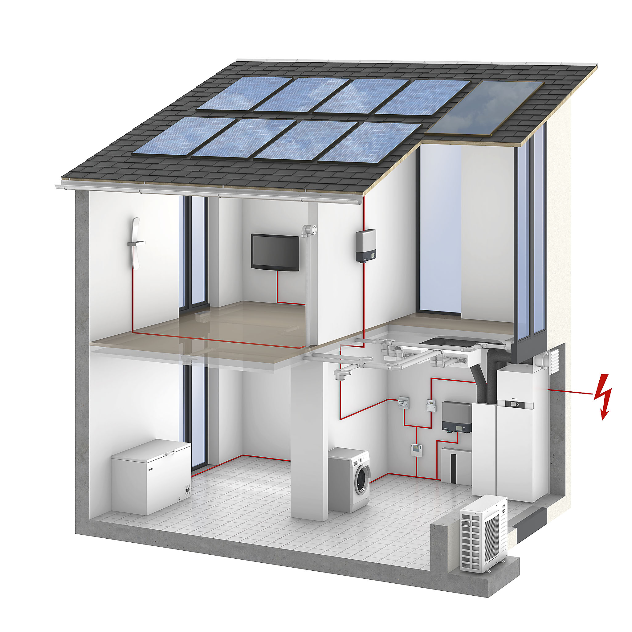 Pre fungovanie fotovoltických panelov je veľmi dôležité, ako a aké panely budú medzi sebou prepojené. Panely na streche alebo na fasáde sa inštalujú v sériovom zapojení, do takzvaných „stringov“ tak, aby sa v paneloch zvyšovalo napätie. Každý jednotlivý panel vyrobí priemerne napätie 35 až 40 voltov a prúd približne 6 ampérov. Keď sa tieto panely zapoja za seba do reťaze, ich napätie sa sčíta (napohľad sú panely na streche umiestnené vedľa seba, reťazové je však ich zapojenie). Na konci – na pluse a mínuse – sa vyrobený jednosmerný prúd odvádza k ďalšiemu prvku fotovoltického systému, ktorým je menič.