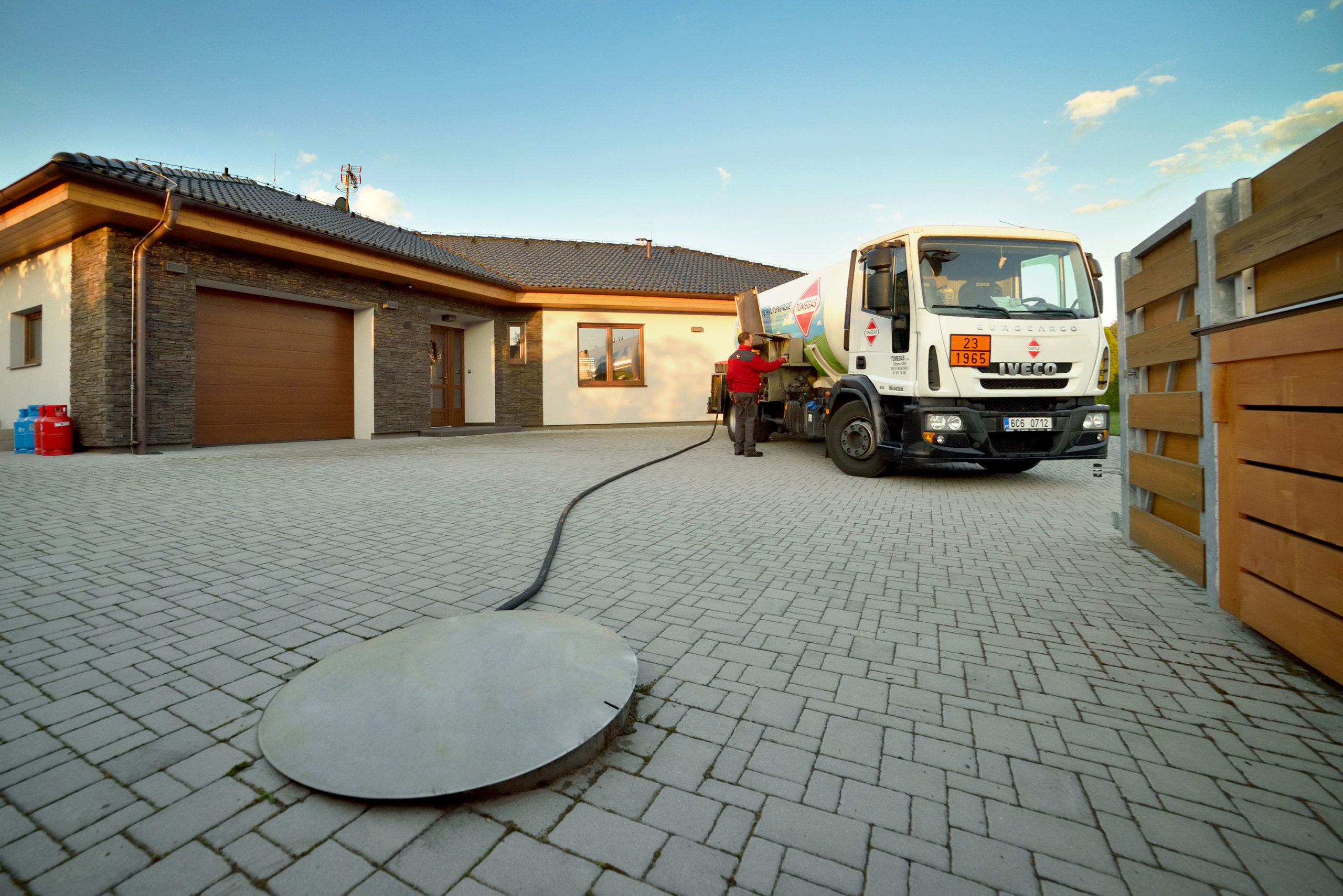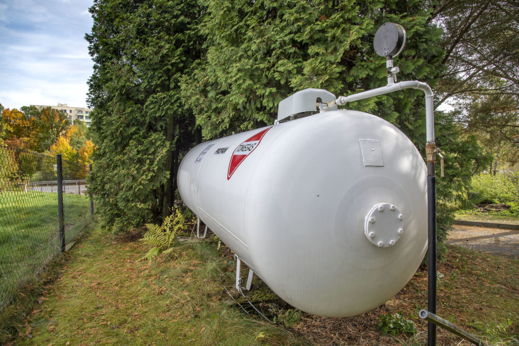 Pro vykurovanie rodinných domov je treba inštalovať u domu zásobník, do ktorého je z pojazdnej cisterny prečerpaný kvapalný plyn. Pro bežný dom stačí na jednu sezónu zásobník s objemom 2,7 alebo 4,8 m3. Zásobník je možné inštalovať ako nadzemný alebo podzemný. Je možné si jej takisto prenajať, pričom cena nie je vysoká a je v nej zahrnutý aj pravidelný servis.