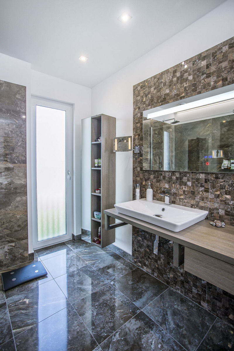 V tomto prípade to bolo naozaj nevyhnutné, pretože všetko muselo byť na milimeter presne rozmyslené ešte predtým, než sa tento montovaný dom začal vyrábať. Dalo by sa povedať, že napríklad kuchynskú linku si pani objednala ešte predtým, než kuchyňa začala fyzicky existovať. Vzhľadom na charakter stavby by nebolo možné dodatočne premiestniť napríklad elektrické zásuvky alebo LED osvetlenie inštalované v strope, pretože by sa porušila štruktúra steny, izolácie a tepelnoizolačné vlastnosti.