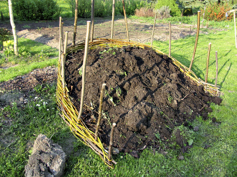 Ak chcete pestovať naozaj zdravú a krásnu zeleninu, určite sa nevyhnete bežnej záhradnej práci. V prípade klopených a vyvýšených záhonov možno pridáte niečo navyše. Rovnako ako pri  „normálnych záhonoch“ treba plochu pripraviť, optimálne zrýľovať, v krajnom prípade možno v dostatočnom predstihu mulčovať. Podľa náročnosti plánovanej zeleniny zhodnotíte, či obohatiť pôdu živinami – najlepšie hnojom alebo kompostom, čím súčasne s živinami dodáte organickú hmotu, ktorá vytvorí priaznivú pôdnu štruktúru a pomôže udržovať dobré vlhkostné podmienky. Ak sa rozhodnete pre teplomilnú zeleninu (paradajky, papriky, tekvice, cukety a ďalšie), odporúča naša sprievodkyňa vytvoriť buď klasický vyvýšený/vysoký záhon alebo (lepšie) na juh klopený vyvýšený záhon. Vo všetkých prípadoch zužitkujete odpad z prerezávania drevín, ktorý použijete na výplet i  výplň záhonov. Čím viac, tým lepšie a čím silnejší materiál, tým dlhšie vydrží. Zvyčajne sa používa silné vŕbové prútie, zhruba ako na korbáč alebo trochu silnejšie, ktoré vydrží podľa informácií našej sprievodkyne 3 až 5 rokov.
