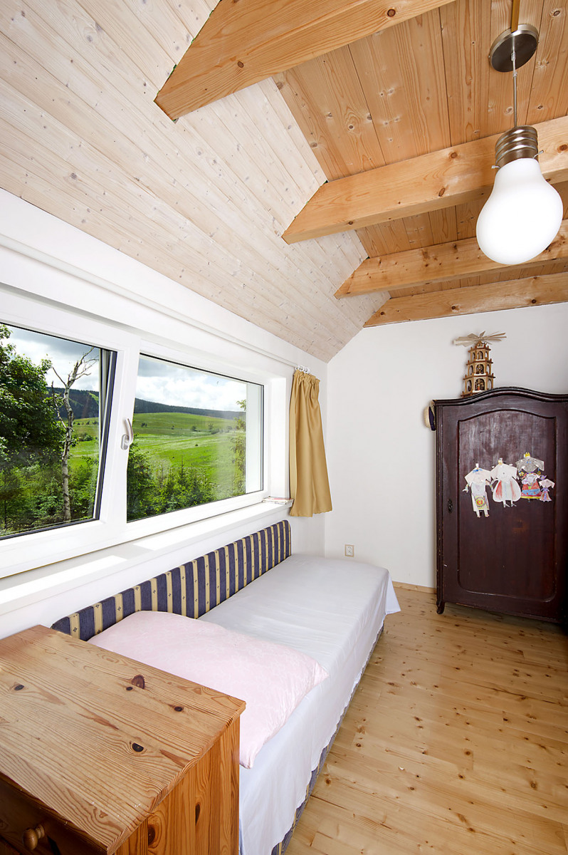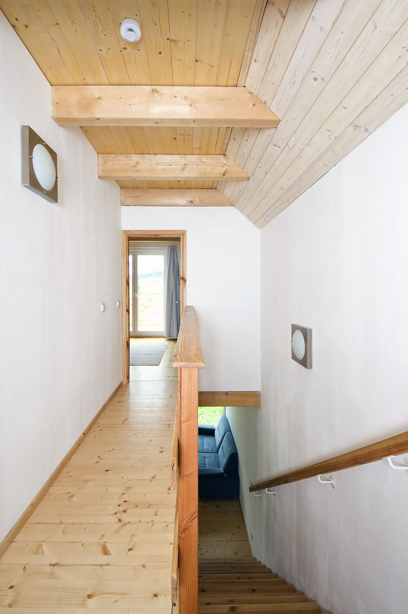 Malý dom na prvý pohľad zaujme prepojením s priľahlou cestou pomocou dreveného mostíka. Krytá lávka umožňuje pohodlný vstup do domu, a to aj v zimnom období. Motív lávky je v danej lokalite navyše rozšírený tradičný prvok.