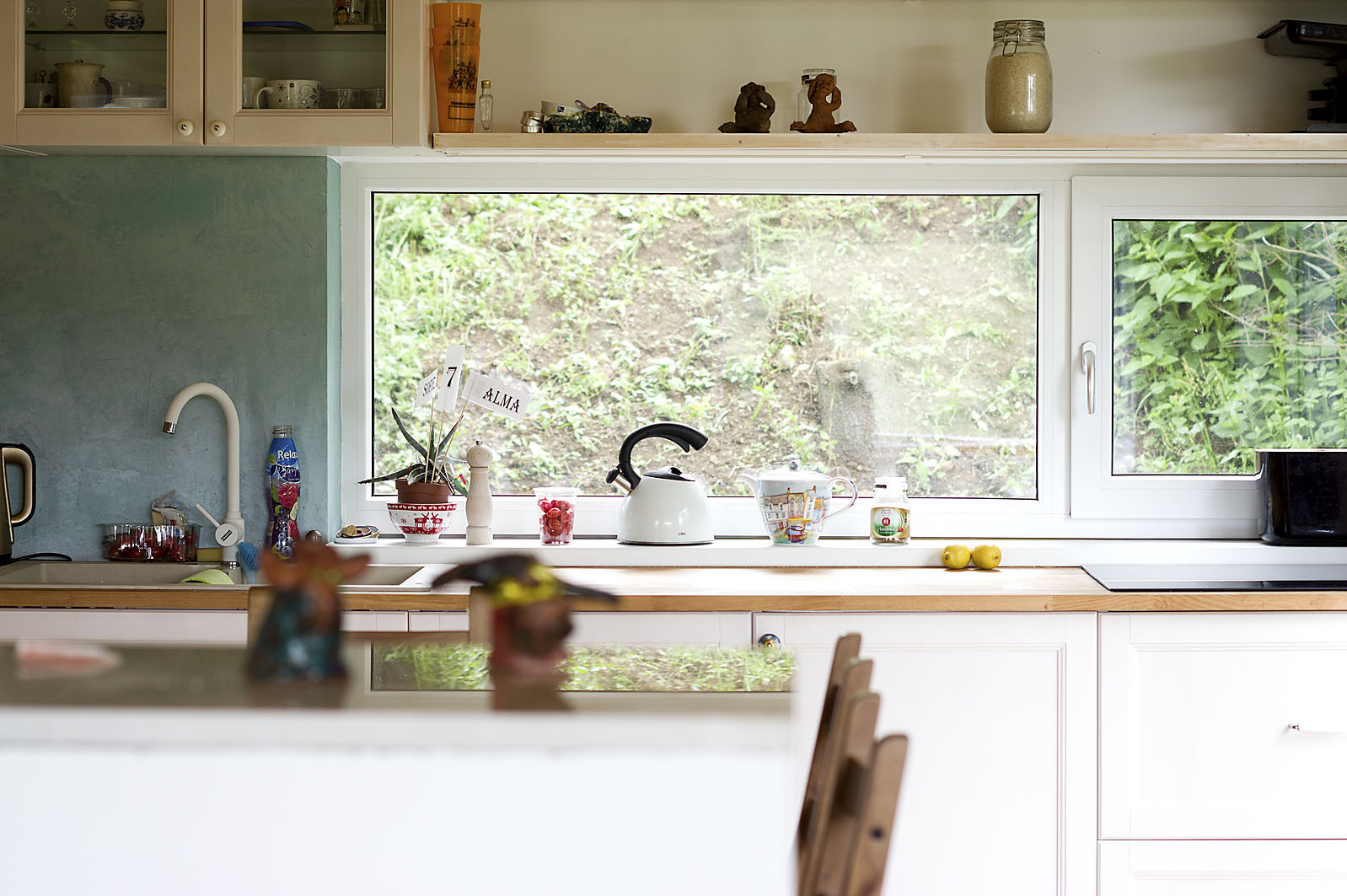 Na pozemku sa nachádza urastená zeleň, ktorú pri stavbe domu zachovali. Vyrúbali iba menšie stromčeky pri lávke a stromy, ktoré bránili vo výhľade. Na záhradné úpravy použili deponovanú úrodnú pôdu. Na zadržiavanie a vsakovanie dažďovej vody na pozemku slúži vsakovacia jama s objemom 1,6 m3.