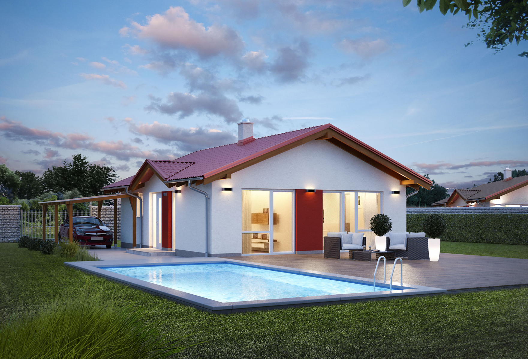 Podľa odborníkov sa ako najekonomickejšia ukazuje stavba jednoduchého geometrického tvaru so sedlovou, pultovou alebo plochou strechou. Pre troj- až štvorčlennú mladú rodinu napríklad prízemný štvorcový bungalov 10 × 10 m (asi 90 m2 úžitkovej a 110 m2 zastavanej plochy). Dispozične ide o 3 až 4+1, čo je vlastne väčší byt, s technickým a hygienickým zázemím. Poprípade so samostatnou garážou, vonkajšou terasou a v budúcnosti aj záhradným bazénom.