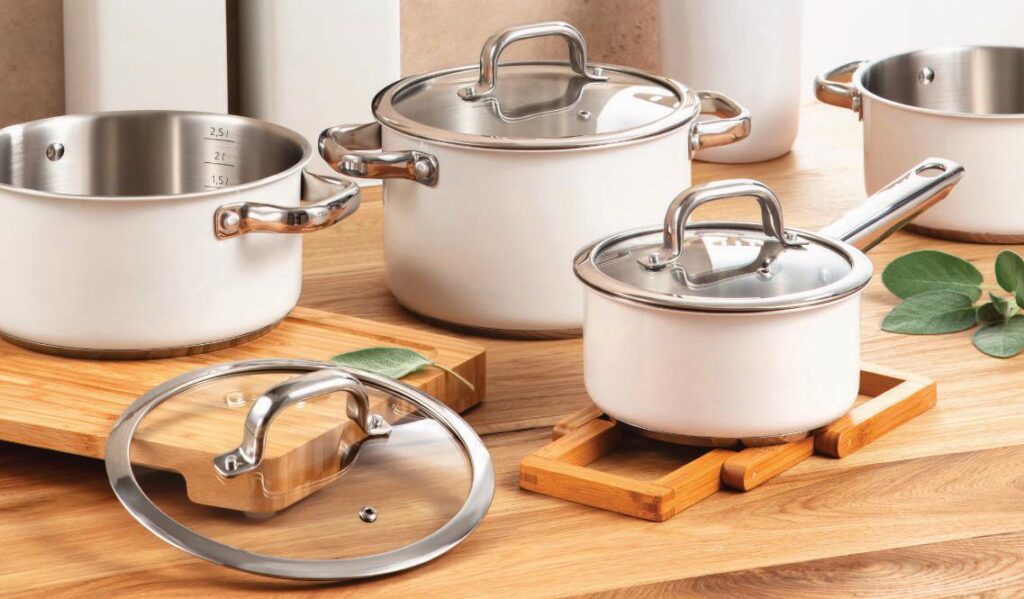 Farby im proste pristanú! Aj antikorové môžu mať krásnu povrchovú úpravu. Čo napríklad riad DELIGHT v elegantnej bielej farbe? Je štýlový a vysoko kvalitný. Každá nádoba má skloantikorovú pokrievku, trojvrstvové dno a meraciu stupnicu. Rukoväte sú duté a uzatvorené, voda sa do nich ani v umývačke nedostane.