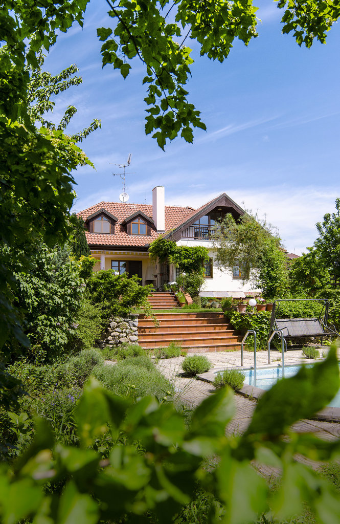 Na mierne svahovitom pozemku s rozlohou 3 500 m2 sa harmonicky prelínajú nerovnako veľké plochy s rôznym využitím od veľkoryso pojatej predzáhradky s plejádou kvitnúcich trvaliek cez terasu porastenú levanduľou, zeleninové záhony vrátane skleníka až po malinčie, ovocný sad s výbehom pre hydinu a hájik s vôňou medvedieho cesnaku.