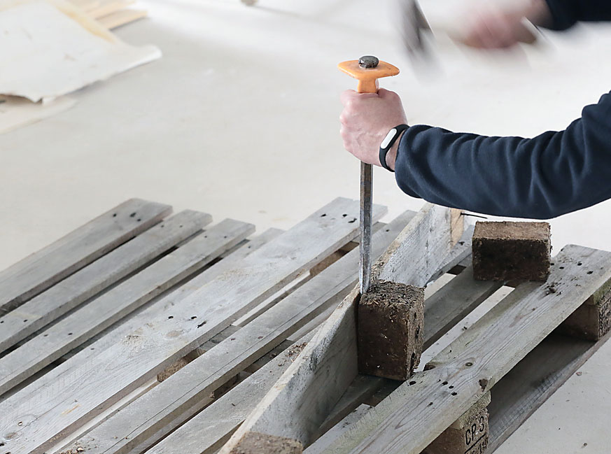 1. Paletu približne v dvoch tretinách prepíľte na dve časti.