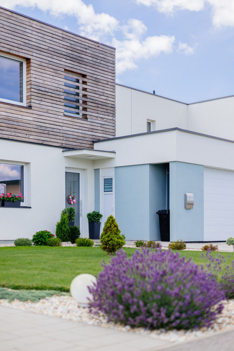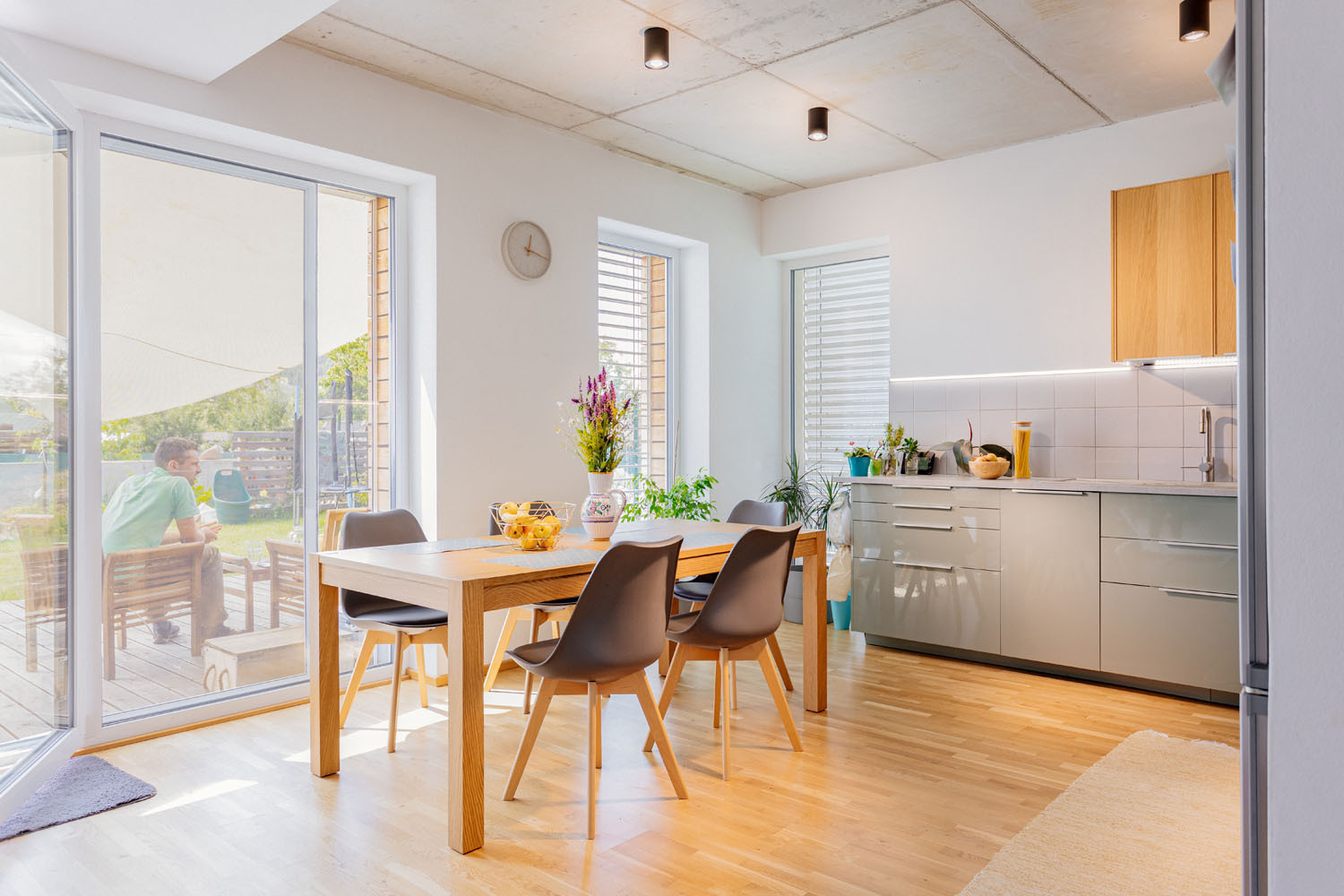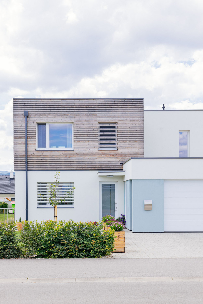 Domy sú postavené s ohľadom na budúcnosť stavebníctva i majiteľov – je tu zrejmá snaha ponúknuť bezstarostné mestské bývanie aj znalosť vývoja nových noriem. Do tejto koncepcie zapadá tiež voľba stavebného materiálu – obvodové murivo je z tepelnoizolačných tvárnic značky Ytong, tento systém bol použitý aj u vnútorných priečok. „Výhodu Ytongu vidíme v tom, že je homogénna a vhodným zabudovaním je možné pomerne jednoducho realizovať potrebnú vzduchotesnú obálku domu. S materiálom Ytong dokážeme efektívne zabrániť vznikom tepelných mostov. To je pre domy, ktoré sme chceli doviesť na hranicu pasívnych hodnôt, dôležité. Aj vďaka ľahkej spracovateľnosti Ytong prispieva k variabilite priestoru – napríklad prízemná obytná časť je koncipovaná tak, aby si finálne umiestnenie kuchyne zvolili majitelia. A materiál, do ktorého sa dobre umiestňujú zariaďovacie prvky, im umožní ľahkú realizáciu,“ uvádza k voľbe materiálu pán Rehák.