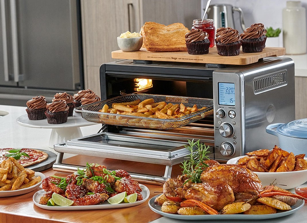 Zariaďovanie malých kuchýň je samý kompromis. Obetovať priestor umývačke riadu, alebo elektrickej rúre? Túto dilemu za vás vyrieši mini rúra SAGE The Smart Oven And Fryer SOV860BSS. Nielenže pečie rovnako dobre ako jej väčšie sestry, ona zastúpi aj mikrovlnku a fritézu! Pečie, opeká, griluje, pripravuje lievance, frituje horúcim vzduchom, čiže zdravšie, zvláda aj pomaly varené krehké a šťavnaté pokrmy. Ak treba, udrží jedlo teplé, alebo si ho v nej môžete ohriať.