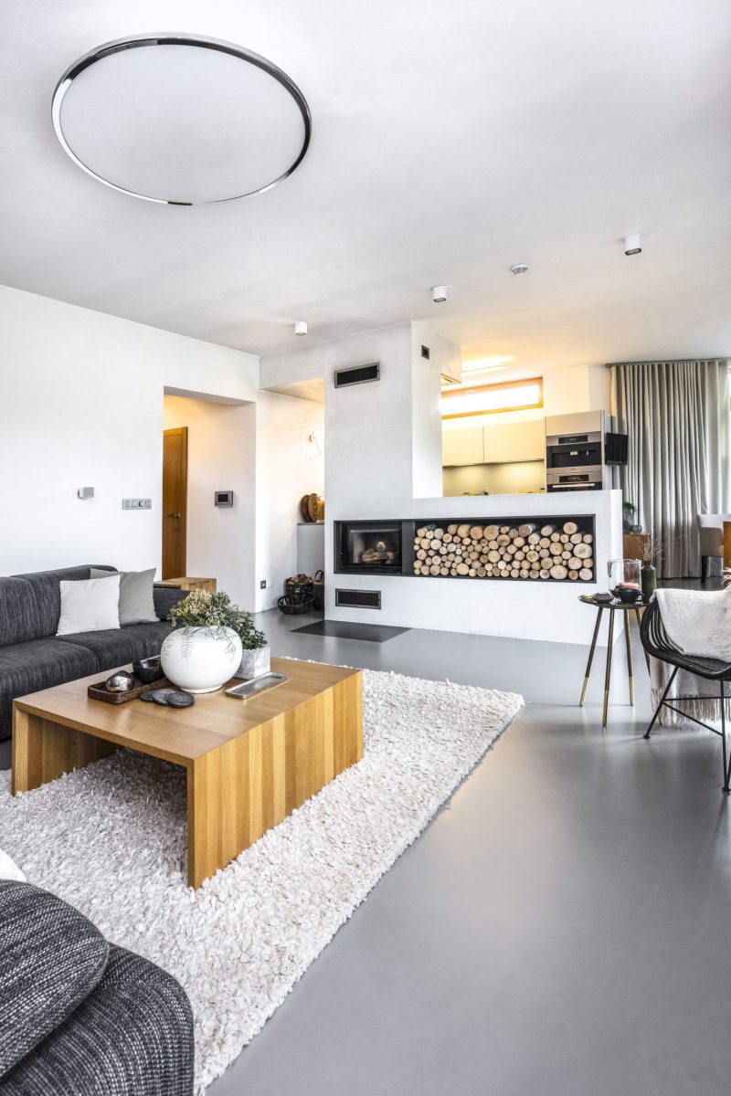 Vykurovanie: tepelné čerpadlo zem/ voda, teplovodné dlážkové kúrenie, kúpeľňové rebríky, kozub s vložkou