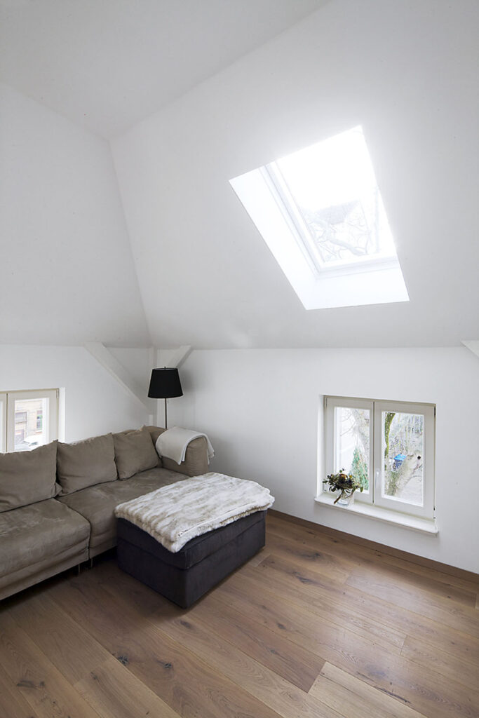 Otvorením priestoru do krovu získate vysoký vzdušný priestor, pôsobivý vzhľad, a ak použijete strešné okná, tak aj viac svetla. Odhalené (okrem stĺpikov) môžu zostať len väznice a klieštiny, a ak je tepelná izolácia umiestnená nad krokvami, tak aj krokvy. Záleží na konkrétnych priestorových a technických možnostiach. Všetky drevené prvky musia byť ošetrené požiarnymi nátermi. Drevo obzvlášť vynikne v kombinácii s bielymi sadrokartónovými podhľadmi. Viditeľné môžu zostať aj zbíjané drevené väzníky (dodajú interiéru zaujímavý industriálny vzhľad).