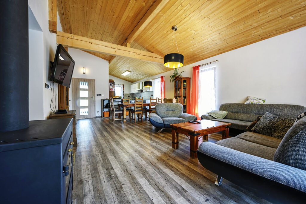 Otvorený dizajn krovu vyzerá zaujímavo a môže sa stať dominantným estetickým prvkom v interiéri. Interiér je vzdušnejší a priestrannejší a vysoký strop odvádza teplý vzduch a zabraňuje prehrievaniu. Poradíme vám, ako nechať vyniknúť drevo krovu strešnej konštrukcie.