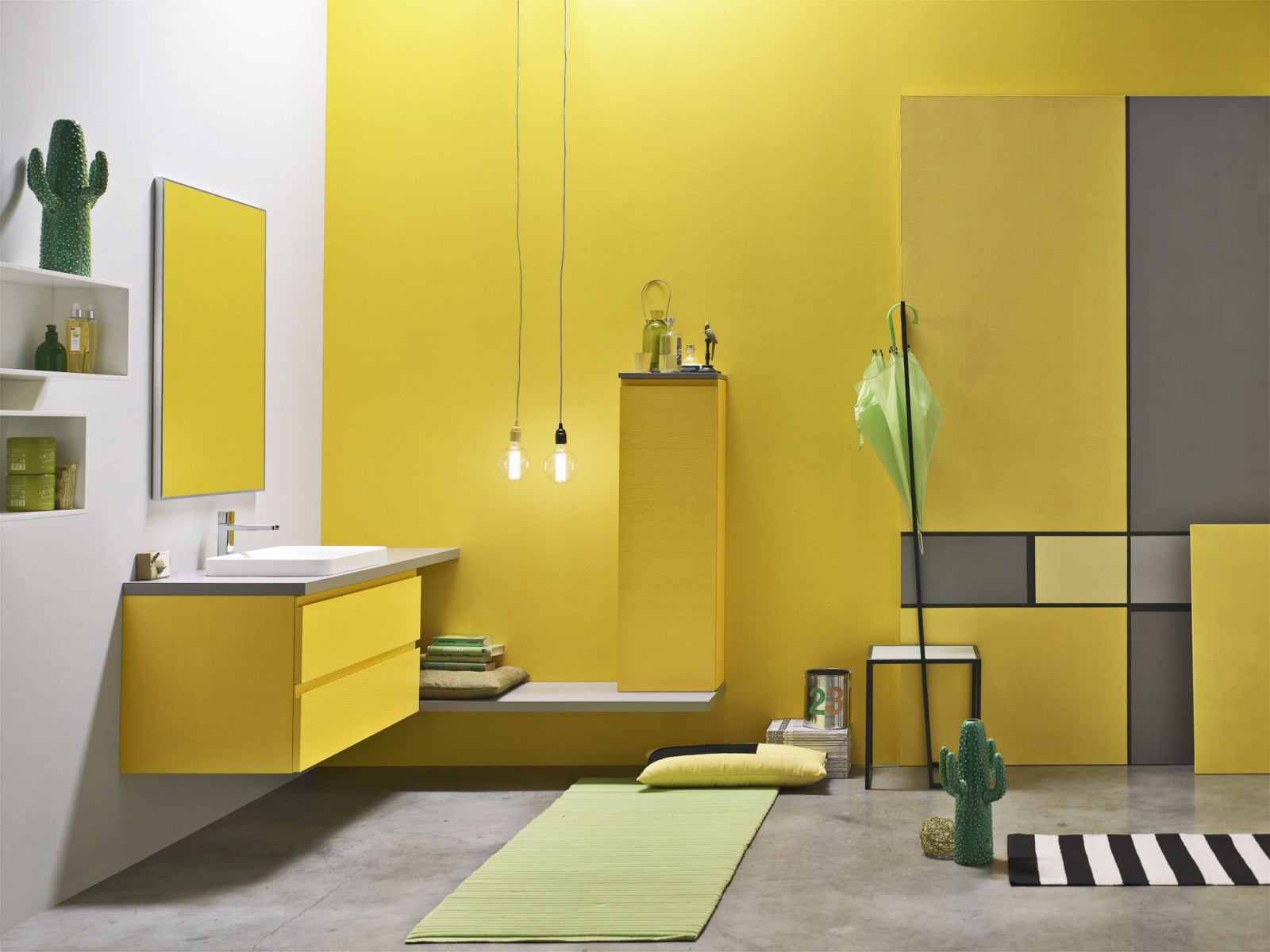 Hoci prírodné materiály a tóny nestratili v interiérovom dizajne na kráse, paleta pestrých farieb nezaostáva. Aktuálne najzaujímavejším tipom je zladenie farebného nábytku s farbou jednej či dvoch stien kúpeľne tón v tóne alebo v decentnom kontraste. Kým v nedávnych časoch sa farby spájali s lakmi a fóliami vo vysokom lesku, súčasný trend dáva zelenú matným povrchom.