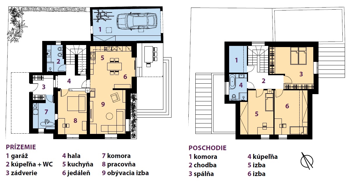 Zastavaná plocha: 133 m2 RD + garáž 43 m2