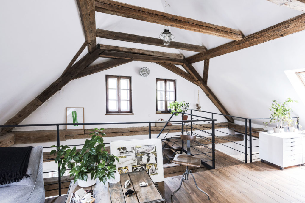 Charakteristiku zásadných stavebných vnútorných prvkov, napríklad schodiska, zábradlia, presklenej zimnej záhrady, sme riešili už pri tvorbe plánov s architektom. Zariadenie interiéru bolo dobrodružstvo, na ktoré som sa veľmi tešila. Súhra starého s novým, podriadená našim potrebám a pohodliu, vo farbách, ktoré sa neopozerajú. Svetlá sú väčšinou industriálne, pozbierané z rôznych bazárov, ktoré sa venujú predaju starého továrenského zariadenia. Naopak stoličky sú nové, pre značku Vitra ich navrhli dizajnéri Charles a Ray Eames. Denne pracujem s textilom, a preto je väčšina textílií spojená so značkou Timoure et group. Obrazy sú prevažne od mojich dvoch kamarátok, maliarok Pavly Soukupovej a Kamily Najbrtovej.