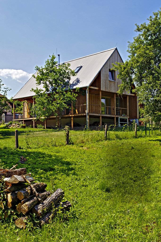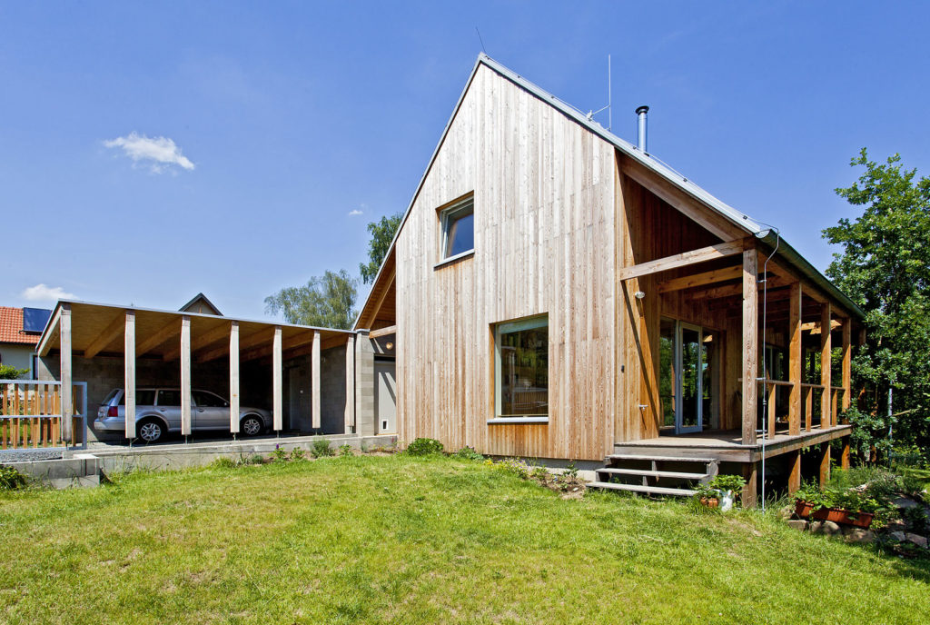 Energeticky úsporná drevostavba, postavená v neveľkej obci, predstavuje optimálny kompromis medzi životom v meste a na vidieku, medzi modernými technológiami a prírodou.