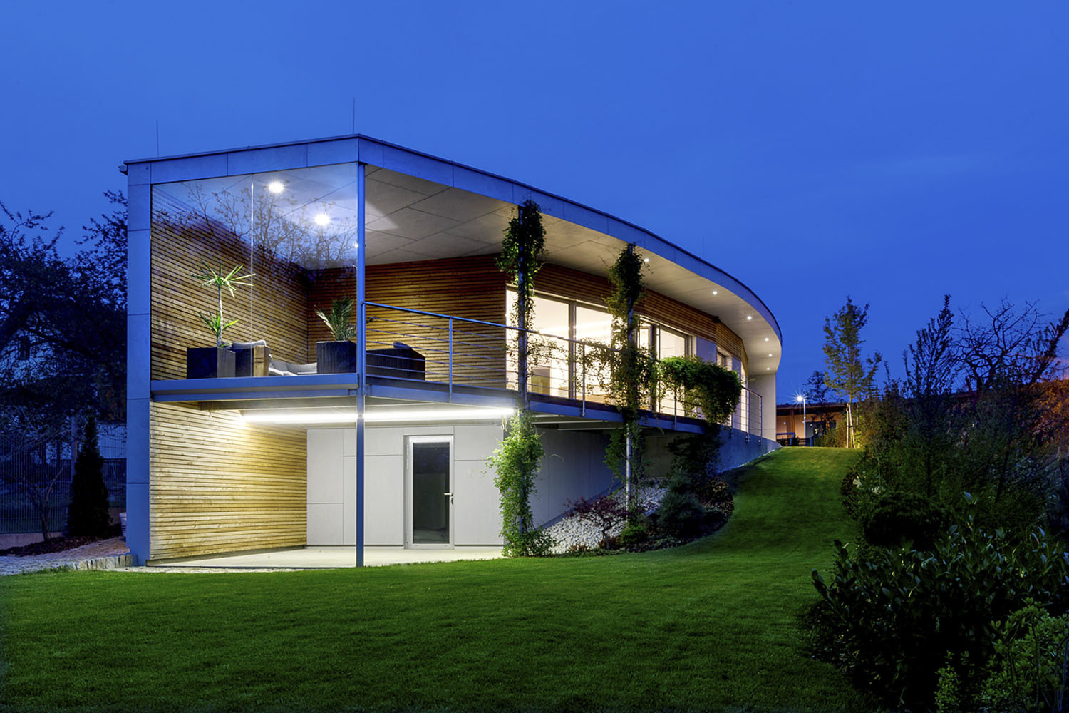 Že bude stavba klasicky murovaná a čo najviac zasklená, vedel od začiatku. Tradične hranatého domu sa však od architekta nedočkal. Pretiahnutý obdĺžnikový pozemok, ktorý má na šírku sotva 16 metrov, inšpiroval architekta k atypickému objektu v tvare prehnutého luku, vďaka ktorému nemajú obyvatelia domu výhľady len ploché, ale doslova trojrozmerné.