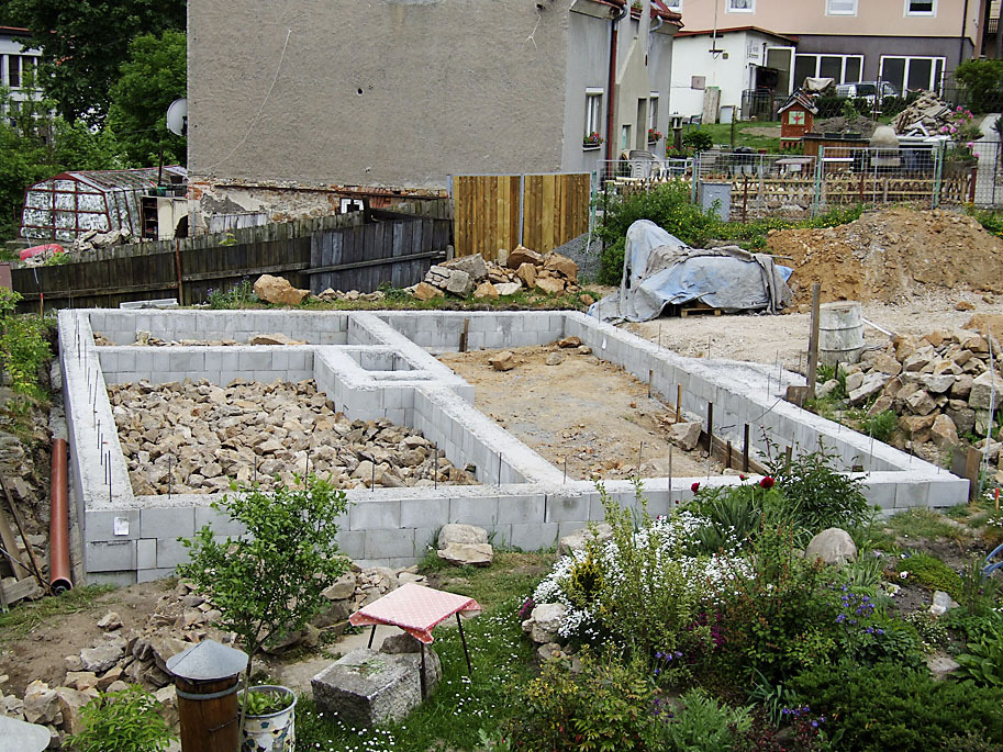 „Stavbu domu som začal plánovať asi pred štyrmi rokmi,“ vracia sa autor diela na začiatok. „Vlastný byt bol v nedohľadne, navyše sa považujem za vidiecky typ. Možnosti vrátane pozemku sa priamo ponúkali. A prečo svojpomocne? Kvôli jednoduchým počtom. Profesionálny murár, s ktorým som sa dohadoval o spolupráci, mi predložil súpis čiastkových prác s cenovou kalkuláciou. Keď som videl sumu – len za základovú dosku a hrubú stavbu pre dvoch ľudí žiadal 15 000 eur! Dohoda sa teda scvrkla na zhotovenie základovej dosky, začlenil som sa do partie a rozpočet vydelil tromi. Od začiatku som vychádzal z toho, že budem mať dosť podhodnotenú hypotéku,“ pokračuje pán Klouček. „Viac by mi vzhľadom na výšku príjmu nepožičali. Veľa sme s rozpočtárom škrtali. Stavba bola ohodnotená na 92 000 eur, k dispozícii mám asi 70 000 eur.“ Stavebníkova kalkulácia: 74 000 eur na materiál a práca, okrem odborných remesiel, zadarmo! „Všetko šlo rýchlo. Môj cieľ bol postaviť a bývať. Nie rozrobiť a potom sa uvidí …“