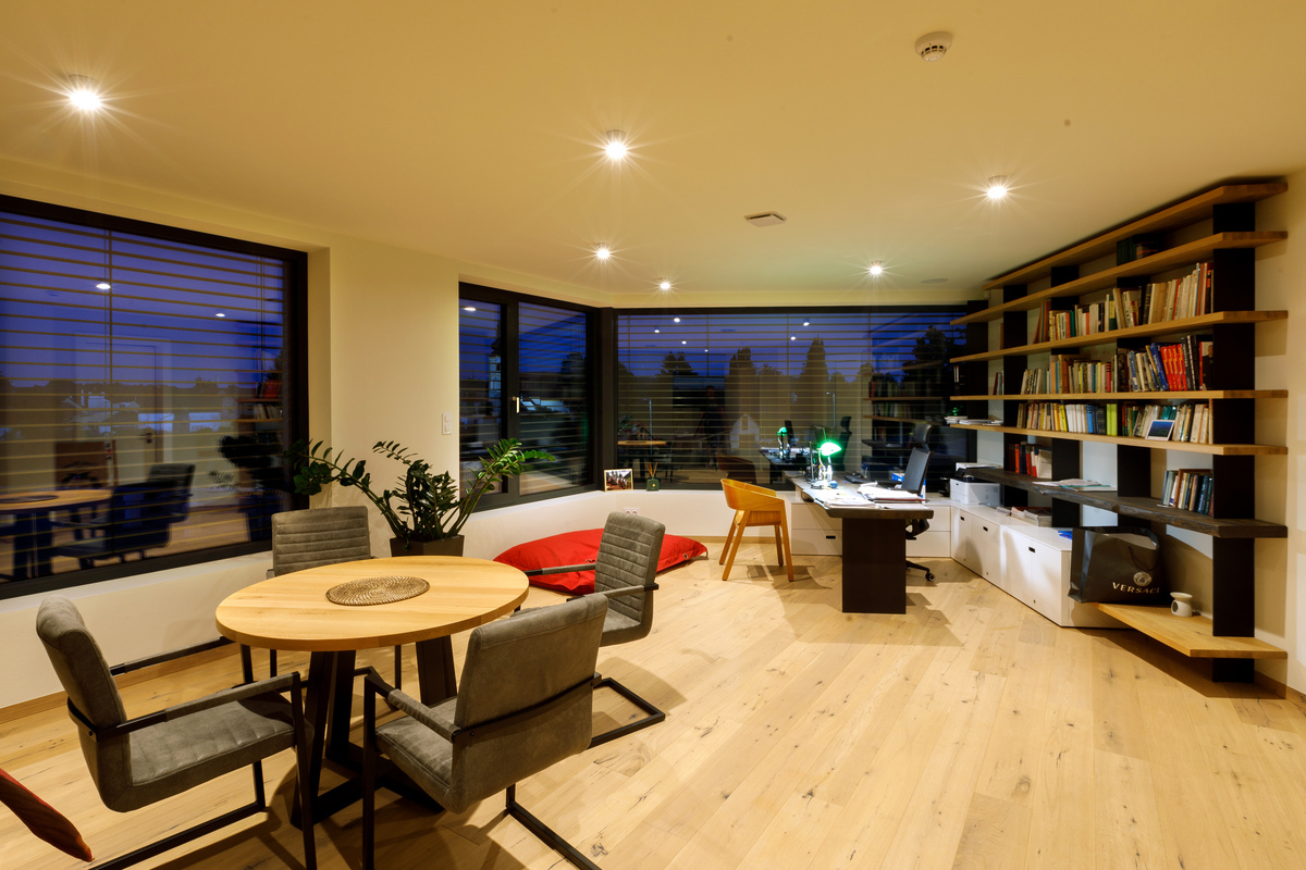 Nízkoenergetický dom (prešiel Blower door testom a získal zelenú dotáciu) s dokonalou dispozíciou a nadväznosťou na záhradu poskytuje krásne výhľady a originálnym tvarom skráteného ihlanu harmonizuje s atypickým pozemkom. Tehlová stavba s odvetrávanou fasádou obloženou smrekovcovými latami a fasádnymi doskami zaujme veľkými zasklenými plochami. Dom je rozdelený na dve časti prepojené terasou. Na obvodové steny s fasádnym obkladom boli použité tehly HELUZ FAMILY 25 a hliníkové okenné systémy s trojitým izolačným sklom Schüco. Podzemné podlažie je murované zo šalovacích vybetónovaných tvárnic, strop je železobetónový. Strecha je realizovaná z drevených KVH nosníkov, zateplená fúkanou izoláciou. Dom je vykurovaný tepelným čerpadlom s vrtom a podlahovým vykurovaním. Rekuperácia zlepšuje vnútornú mikroklímu a klimatizáciu v dome nahradzuje podlahové chladenie. Nainštalovaná bola inteligentná elektroinštalácia, vďaka ktorej sú ovládané žalúzie, osvetlenie, kúrenie aj zabezpečenie domu i hudba, ktorá sa šíri domom a navodzuje priateľskú atmosféru.