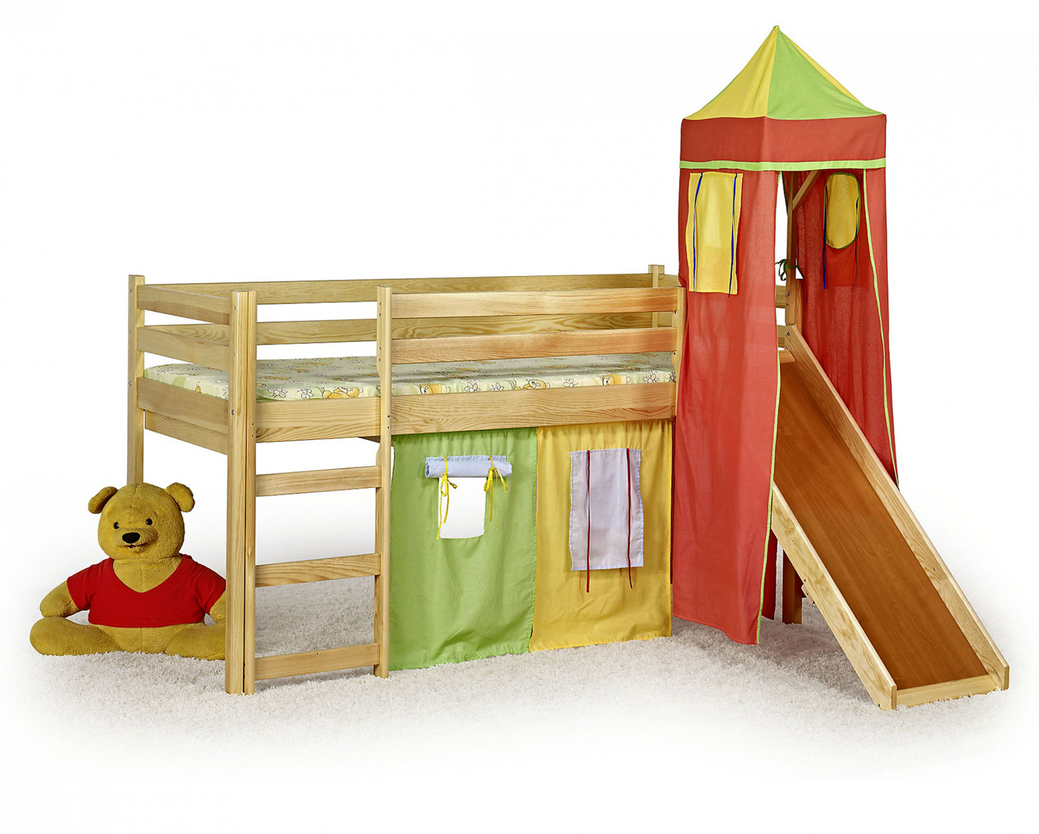 K poschodovým posteliam sa veľmi často predáva veľa doplnkov, napríklad drevené či plastové šmykľavky, tvarované rebríky, schodíky, zásuvky, stolčeky a rad textilných doplnkov. Deti sa veľmi rady schovávajú do prístreškov, ktoré im pripomínajú skrýšu, bunker, domček alebo stan.