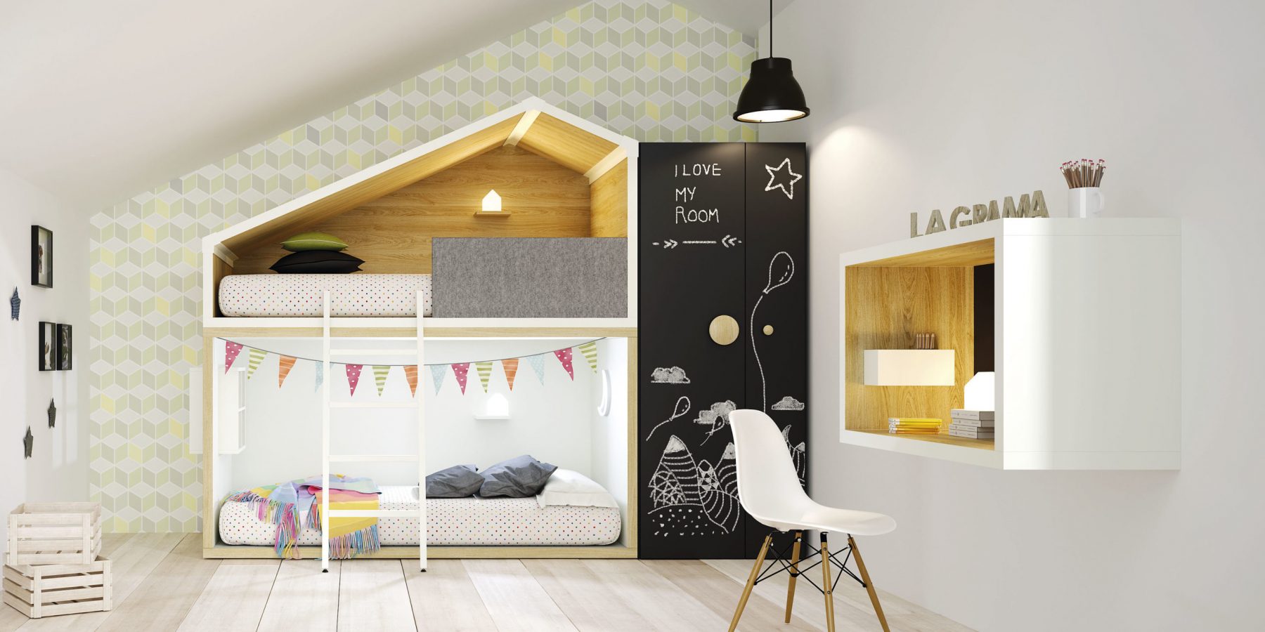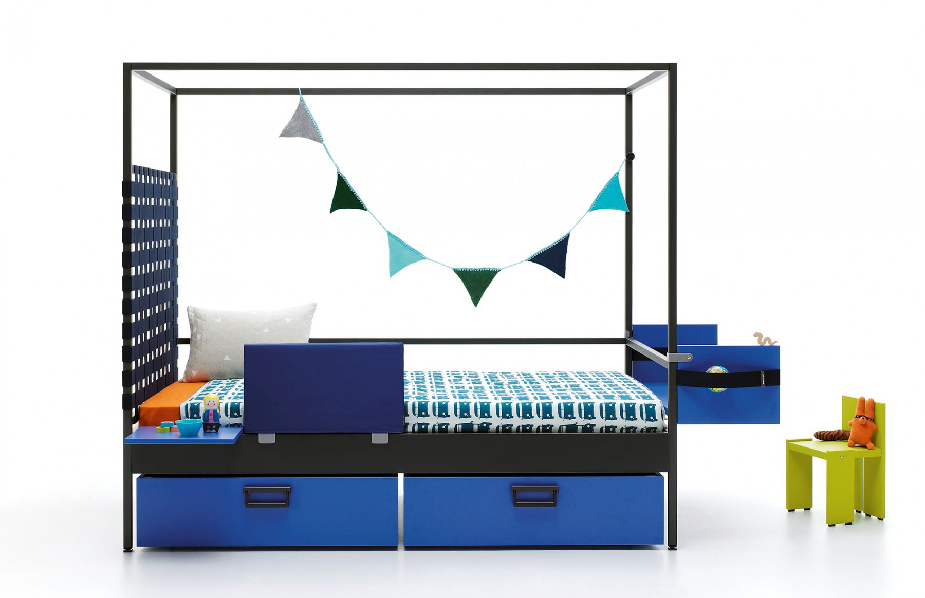 Zaobstarať dieťaťu do izbičky poschodovú posteľ je dobrý nápad, ktorý vyrieši hneď niekoľko požiadaviek. Na vyššom poschodí získate plnohodnotnú posteľ a v priestore pod ňou miestečko na hranie alebo na príležitostný odpočinok, ak tam dáte ešte menší matrac, kresielko alebo sedací vak. Pokiaľ bývajú v izbičke dve deti alebo u vás prespávajú detské návštevy, spodná časť môže slúžiť ako druhá posteľ.