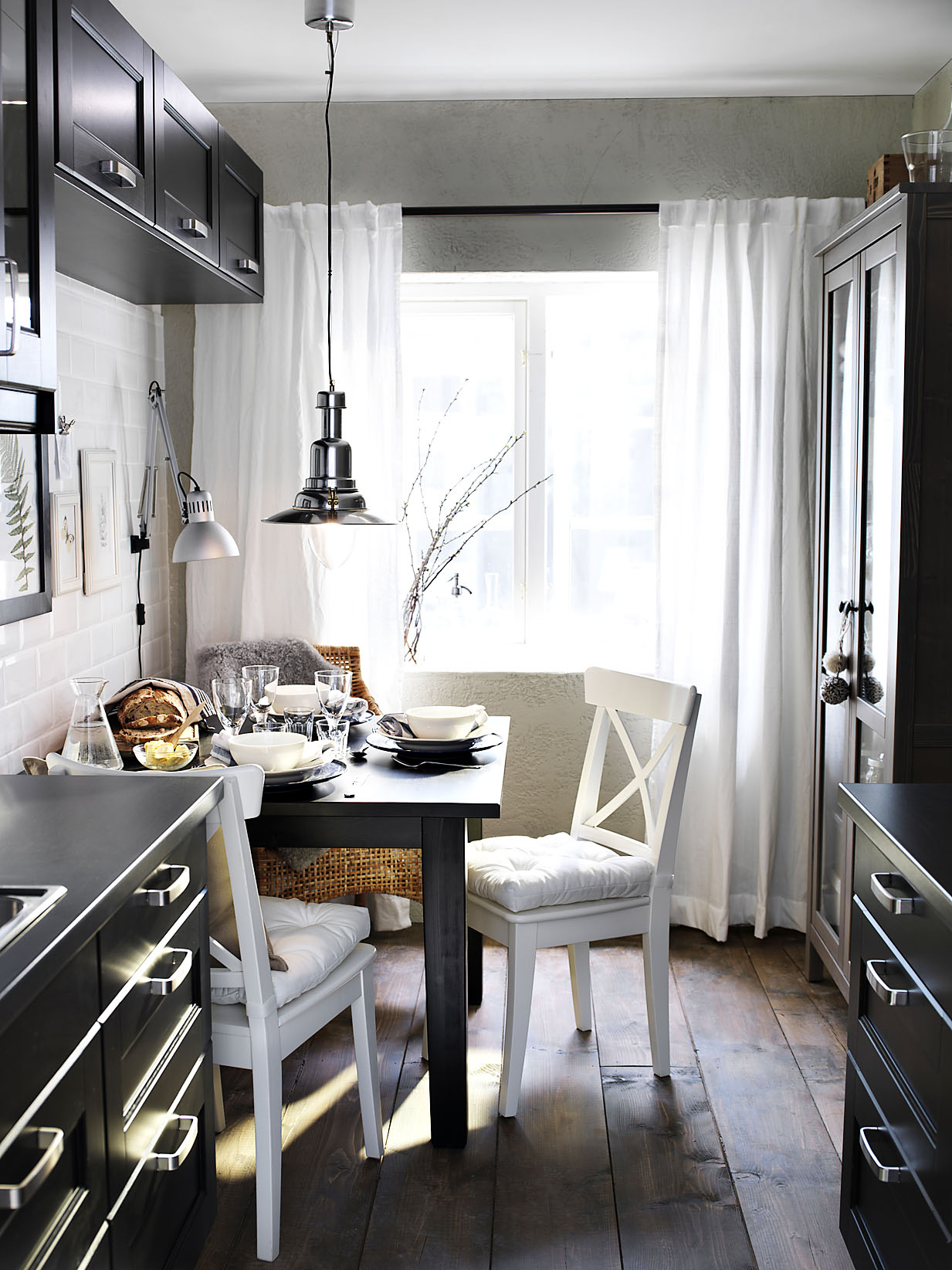 Jedálenský stôl umiestnite v tesnej blízkosti kuchyne s ľahkým prístupom. Miesto pre jednu osobu zaberie šírku cca 60 cm. Hĺbka stola do stredu by mala byť taká, aby ste tam pohodlne dosiahli – asi 80 cm. Optimálne rozmery stola pre 4 stravníkov sú 80 × 120 (radšej 140) cm. S priestorom pre stoličky zaberie jedálenský kút plochu najmenej 200 × 120 (140) cm. V rodinnom dome je však dobré počítať aj s návštevami a jedáleň vybaviť stolom pre 6 osôb.