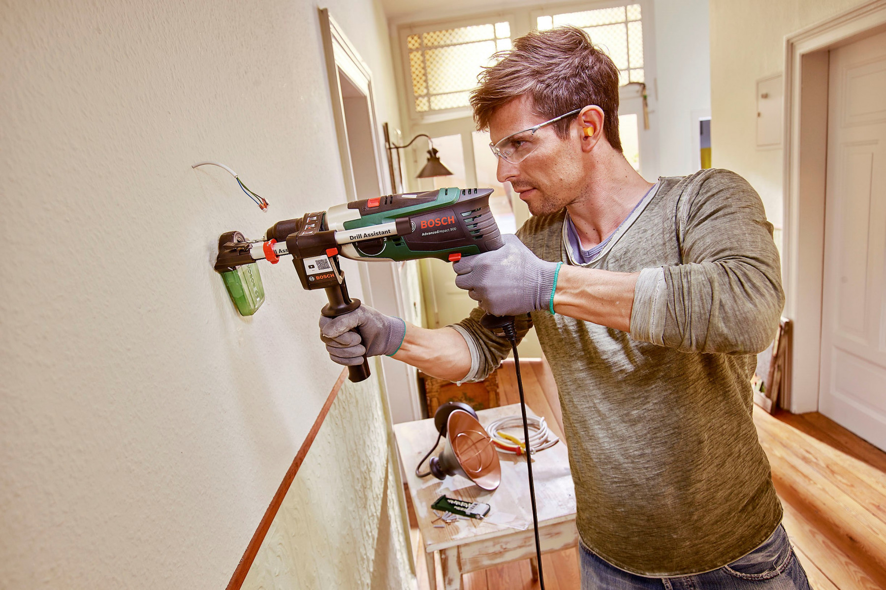 Elektrická vŕtačka je vhodná do dielenskej prevádzky na časté vŕtanie do dreva, kovu, plastu a stavebných hmôt. Napája sa zo siete, takže nemá obmedzený čas prevádzky. Limitujúci môže byť však pracovný priestor daný dľžkou napájacieho kábla. Na vŕtanie do dreva alebo kovu sa hodí vŕtačka bez príklepu. Na vŕtanie do muriva alebo betónu lepšie poslúži príklepová vŕtačka. Jej výhodou je možnosť vypnutia príklepu – vďaka tomu sú príklepové vŕtačky univerzálnejšie.