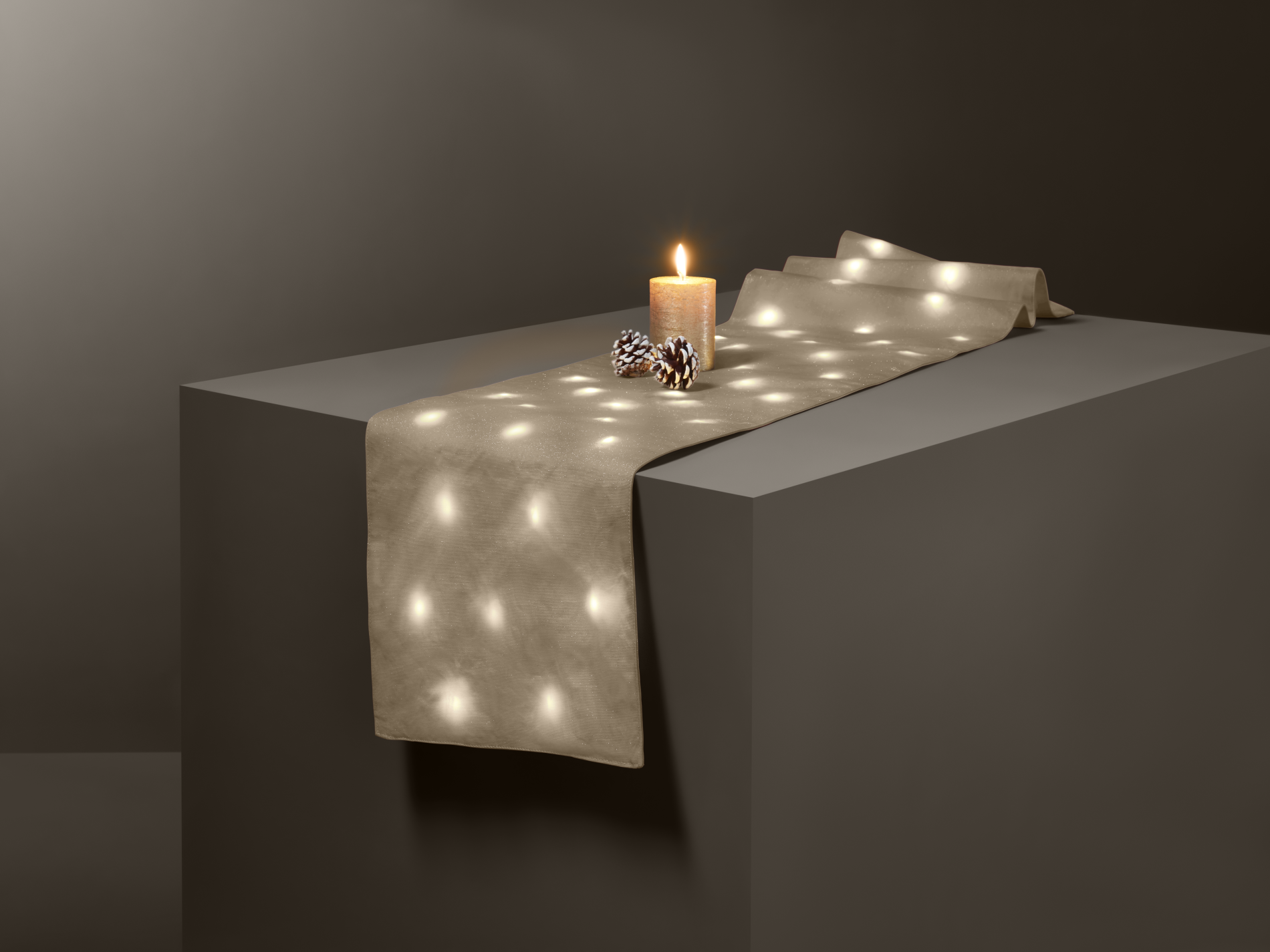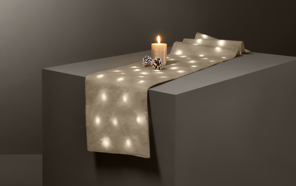 Hitom sú svietiace obrusy a behúne s LED svetlami, ktoré v sviatočnej ponuke Tchibo samozrejme nechýbajú. Slávnostný efekt dosiahnete aj natiahnutím svetelnej girlandy s teplým bielym svetlom cez stôl.