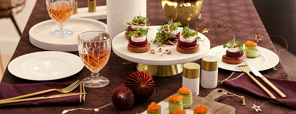 Punc mimoriadnej udalosti dodajú vašej tabuli príbory v zlatej farbe, skvejúce sa vo svetle sviečok. Poschodový podnos s vysúvacími doskami umožňuje servírovať ešte viac dobrôt, než sa na stôl bežne zmestí. Syroví gurmáni ocenia doštičku na syr. V jej vnútri sa skrýva príbor na syr: nôž na tvrdý syr, nôž na mäkký syr a vidlička na syr.