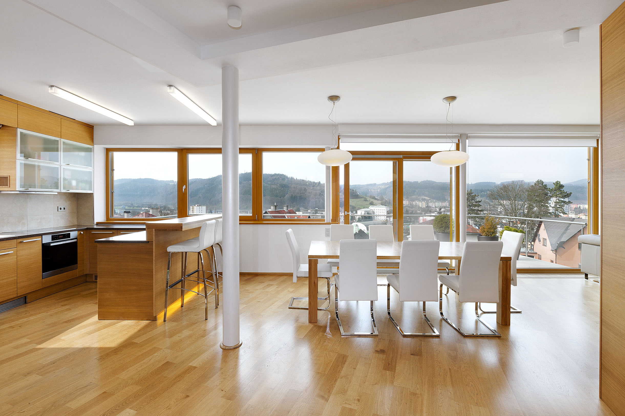 Vďaka veľkému množstvu okien je dom svetlý a vzdušný. Majitelia zvolili drevené okná s trojitým zasklením, ktoré majú zvonku aj zvnútra bezpečnostnú fóliu. Napriek tomu, že je v dome rozvedená príprava na klimatizáciu, majitelia nie sú jej priaznivcami, a tak siahli po tienení. „Pri takom množstve okien je kvalitné tienenie nevyhnutné. S jeho pomocou udržíte optimálnu teplotu a vytvoríte príjemnú vnútornú klímu,“ hovorí David Žabčík zo spoločnosti Climax, ktorá je overeným výrobcom tieniacej techniky a ktorej tienenie majitelia použili.
