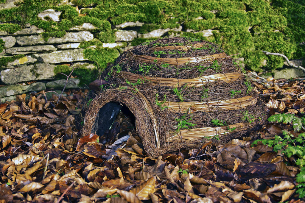 Strieška pre ježe tvarom pripomína iglu. Pletie sa z prútia a vystuží kovovou konštrukciou. Jež v nej má dostatok miesta, sucho a pokoj