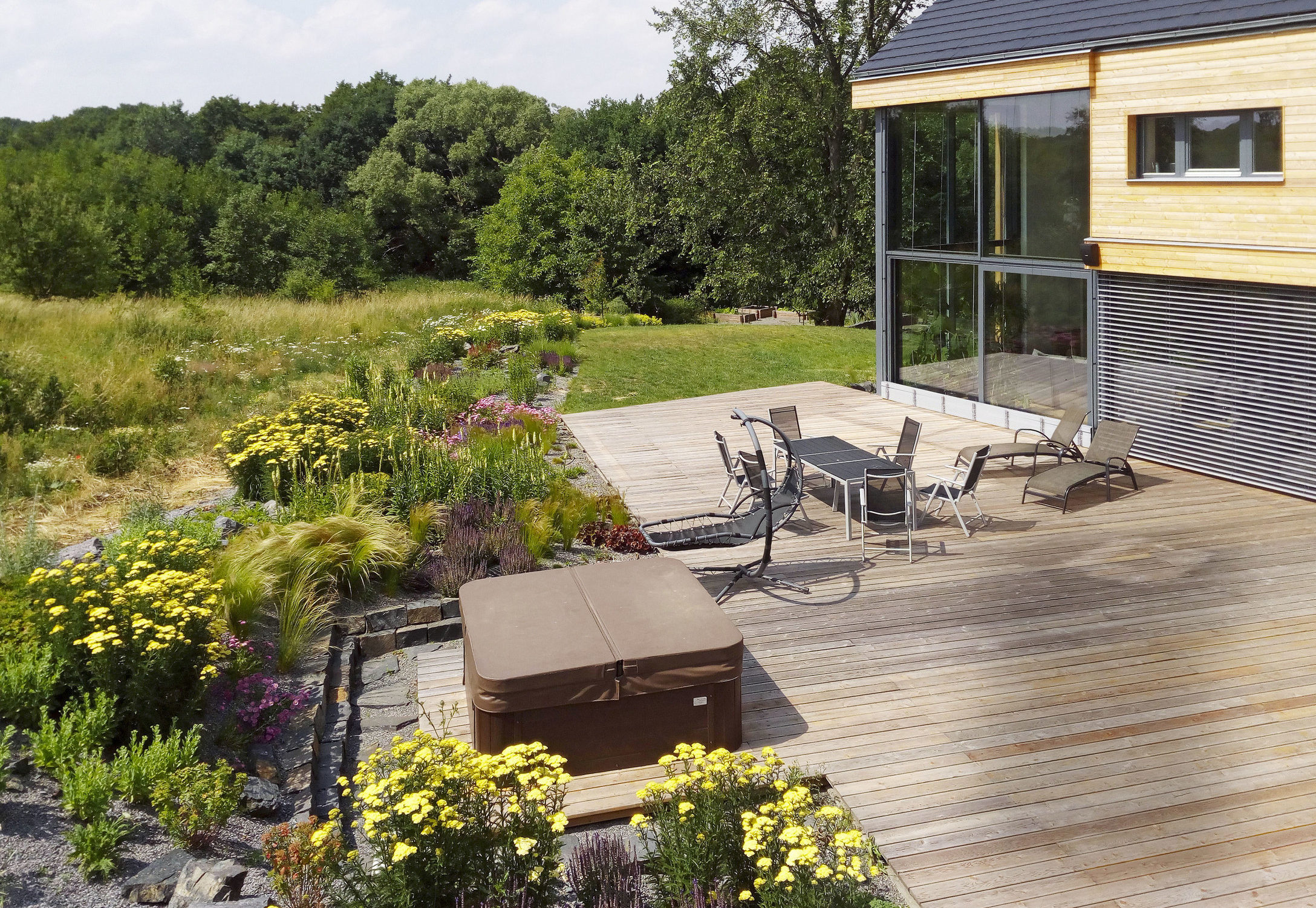 Architekt David Horák, jeden z autorov koncepcie záhrady, na úvod vysvetľuje: „Architektúra domu s terasou priamo nabádala, aby sa ešte viac otvoril nádhernej okolitej prírode a ponúkol majiteľom čo najviac možností aktívneho i pasívneho vyžitia.“