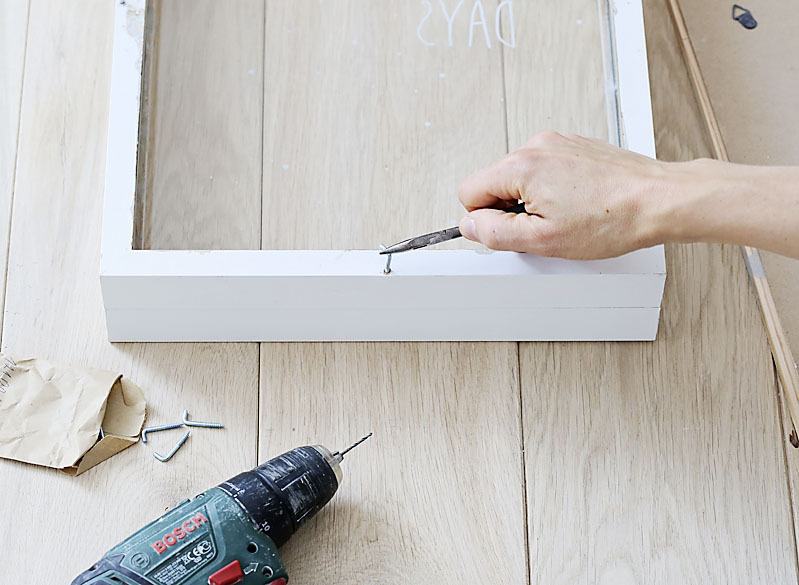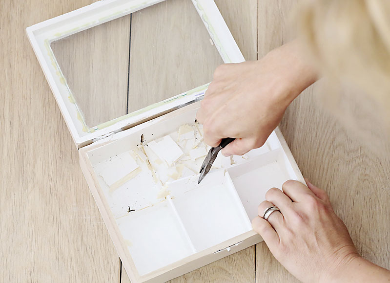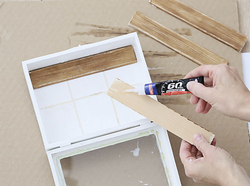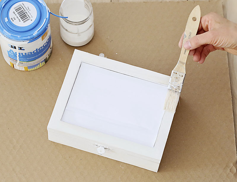 - drevený box na čaj alebo dva hrubé biele rámy na fotografie