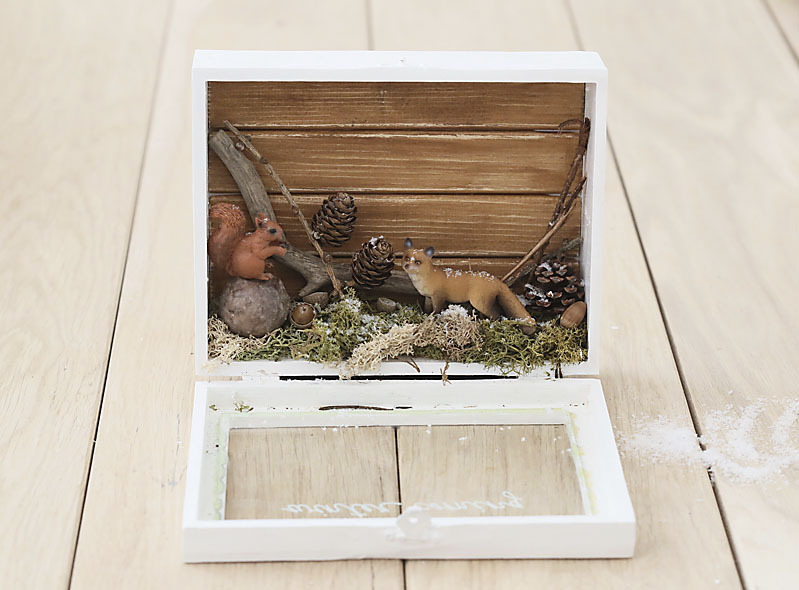 Vyrobte si drevený box, ktorý vám navodí zimnú atmosféru ešte pred Vianocami. Môžete ho zavesiť na stenu alebo len tak položiť na nábytok. Deti si jeho obsah môžu usporiadať samy.